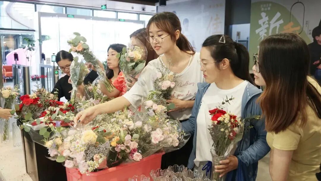 西山居行政在母亲节时准备了超多鲜花,员工们可以自行挑选,选一簇最美的花献给母亲。