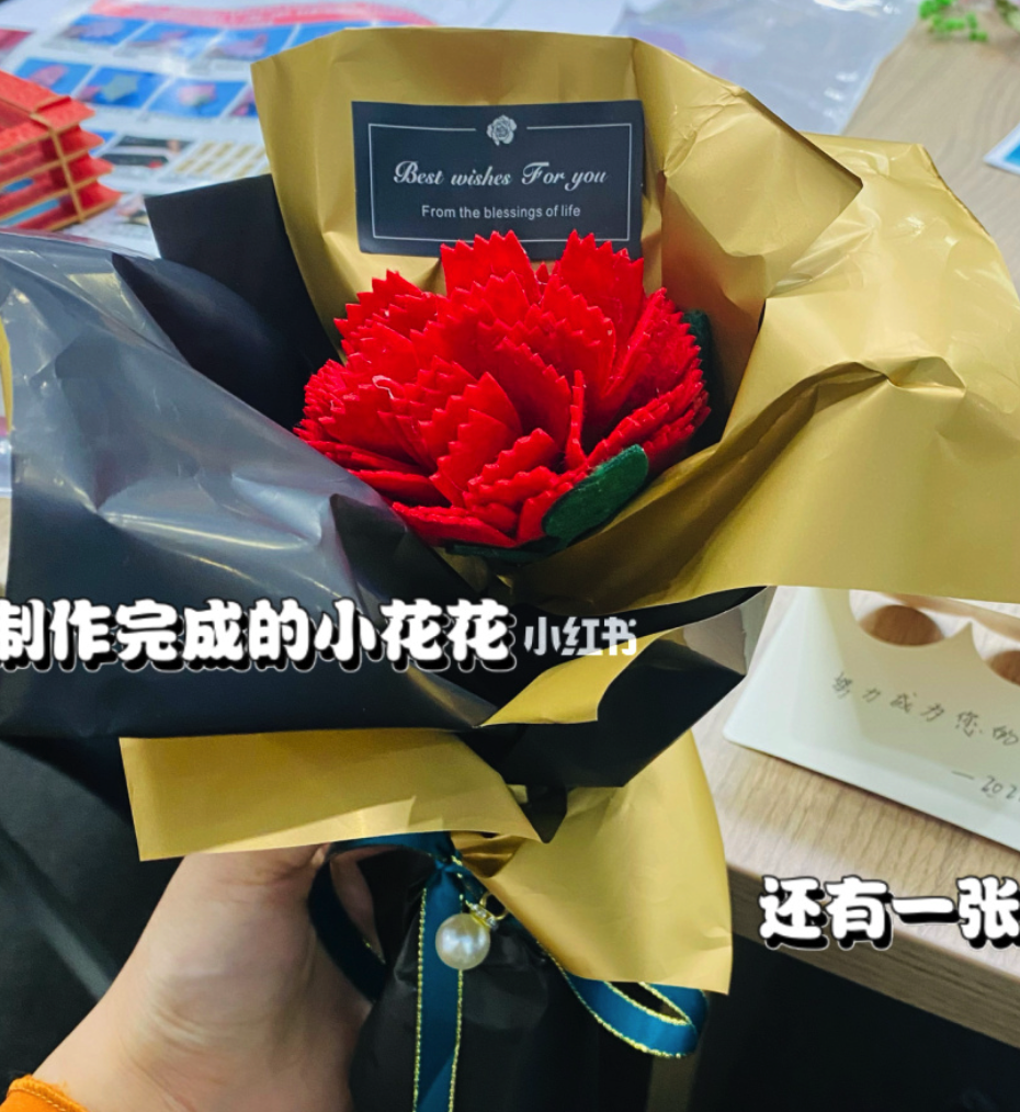如果想要一份低成本、能打动公司宝妈们的小礼物,手工花束与贺卡的组合一定不能错过!