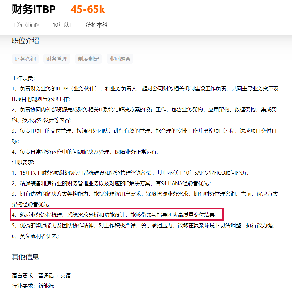 而另一方面,ITBP更多承担着需求分析师的工作,主动挖掘业务用户的需求,制作需求蓝图。