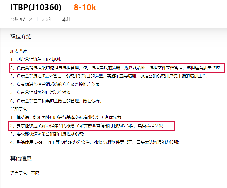 ITBP需要深度了解业务用户场景,精通业务部门的业务流程管理,包括流程建设的策略规划及落地,流程文件文档管理,流程运营质量监控等;