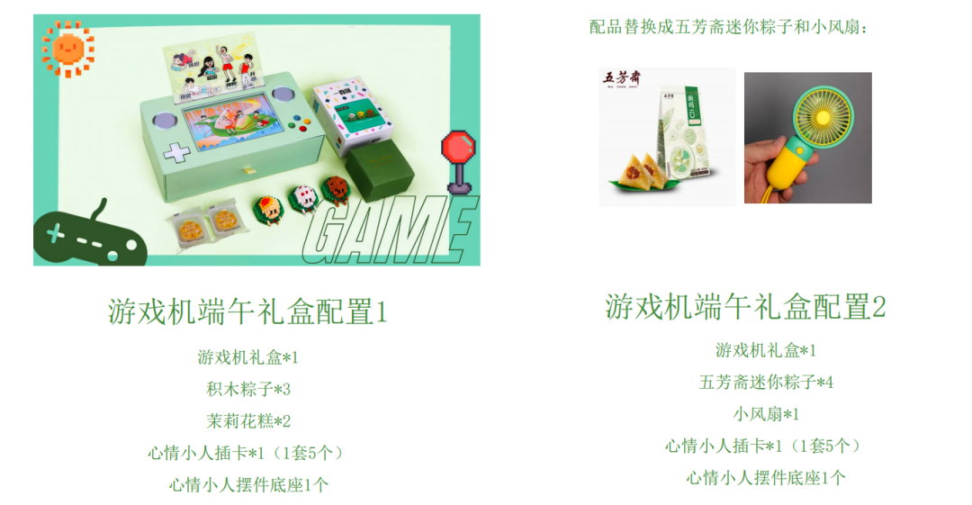 礼盒内含:游戏机礼盒、心情小人插卡、粽子等