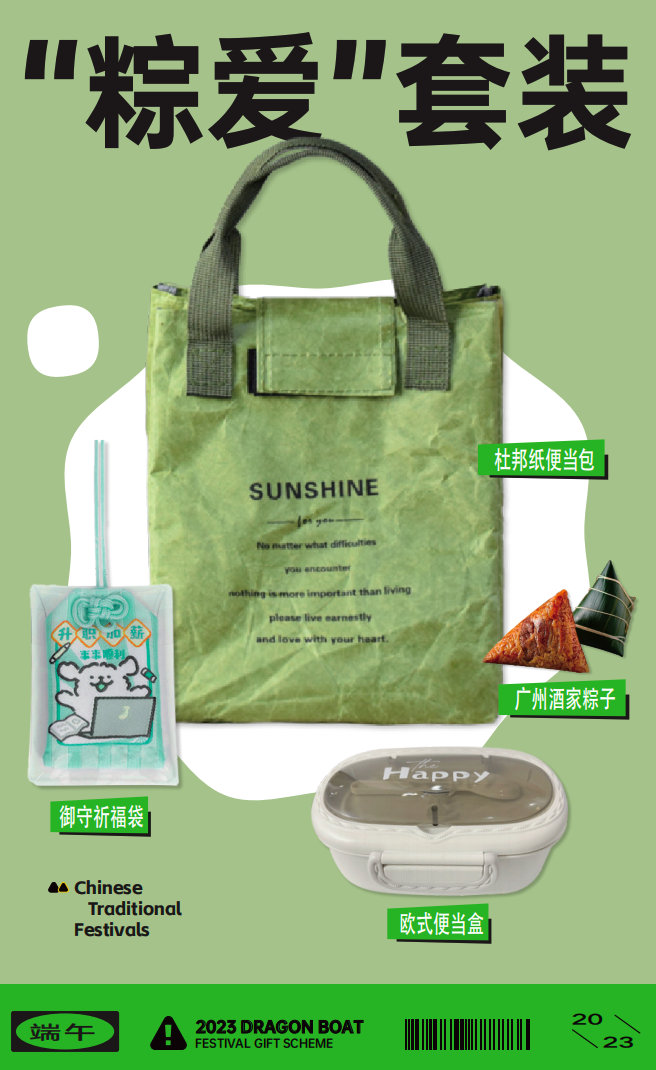 礼盒内含:杜邦纸便当包、便当盒、御守、粽子等