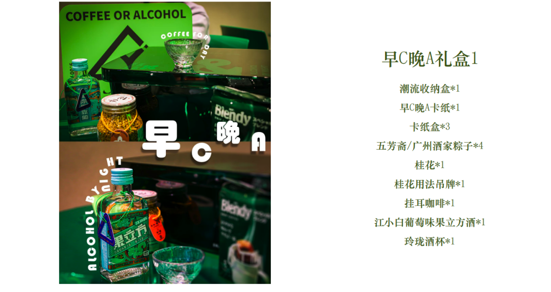 礼盒内含:收纳盒、桂花、挂耳咖啡、果味酒、酒杯等