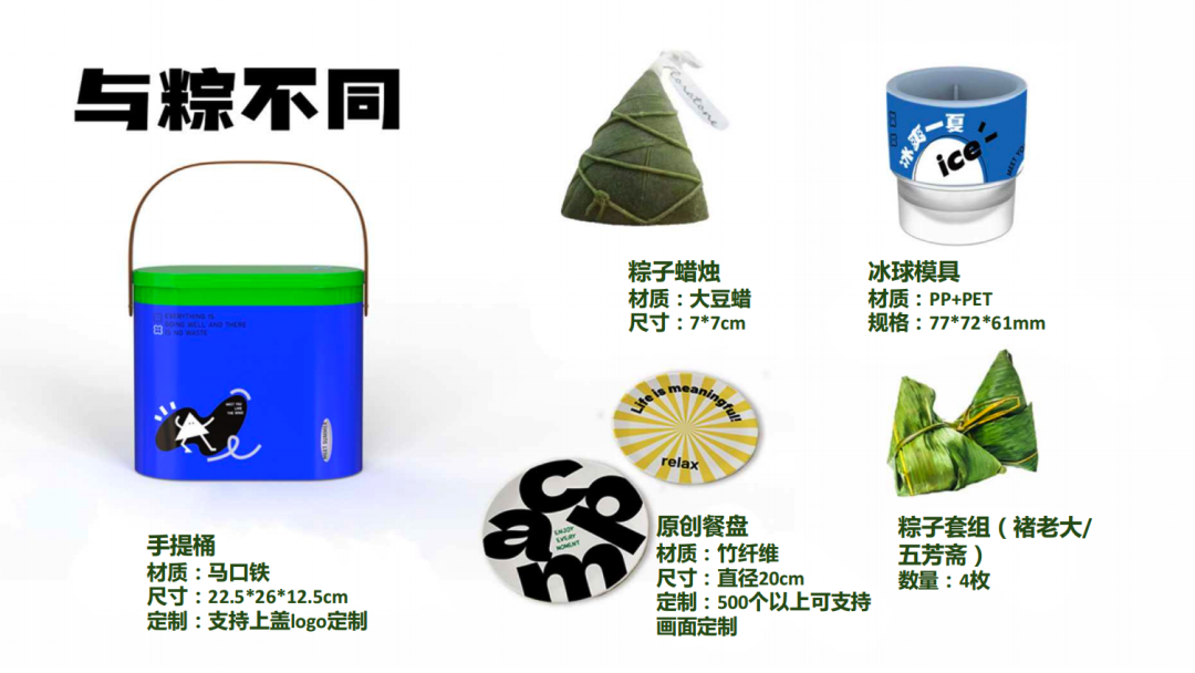 礼盒内含:冰块模具、粽子造型蜡烛、原创餐盘等