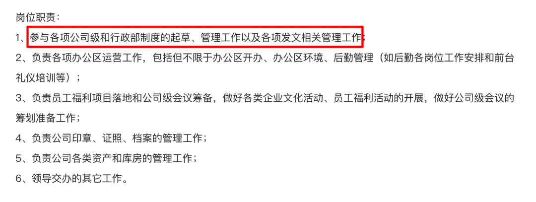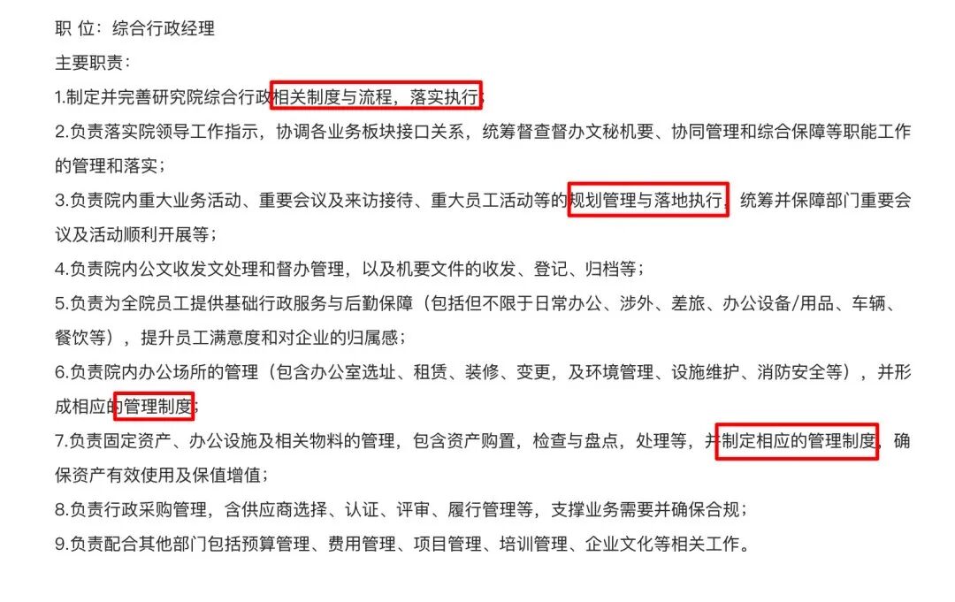 制定行政管理制度,是行政经理能力要求中最为重要的一点,绝大部分招聘需求都有提及。
