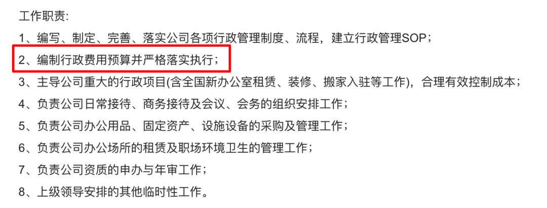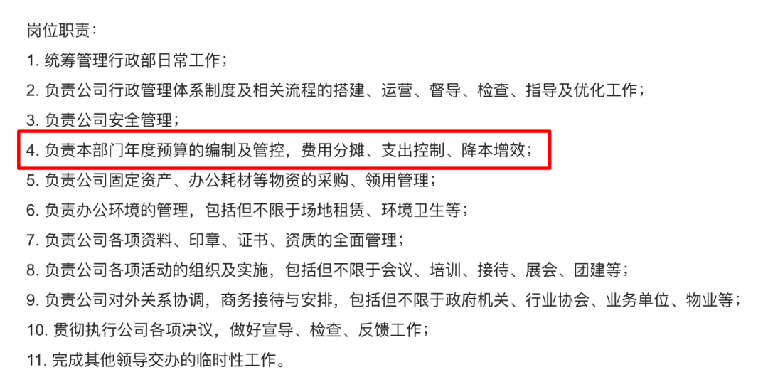 无论是协助行政总监还是自行负责,大部分公司都会要求行政经理拥有能够制定部门预算的能力,能够控制行政成本。