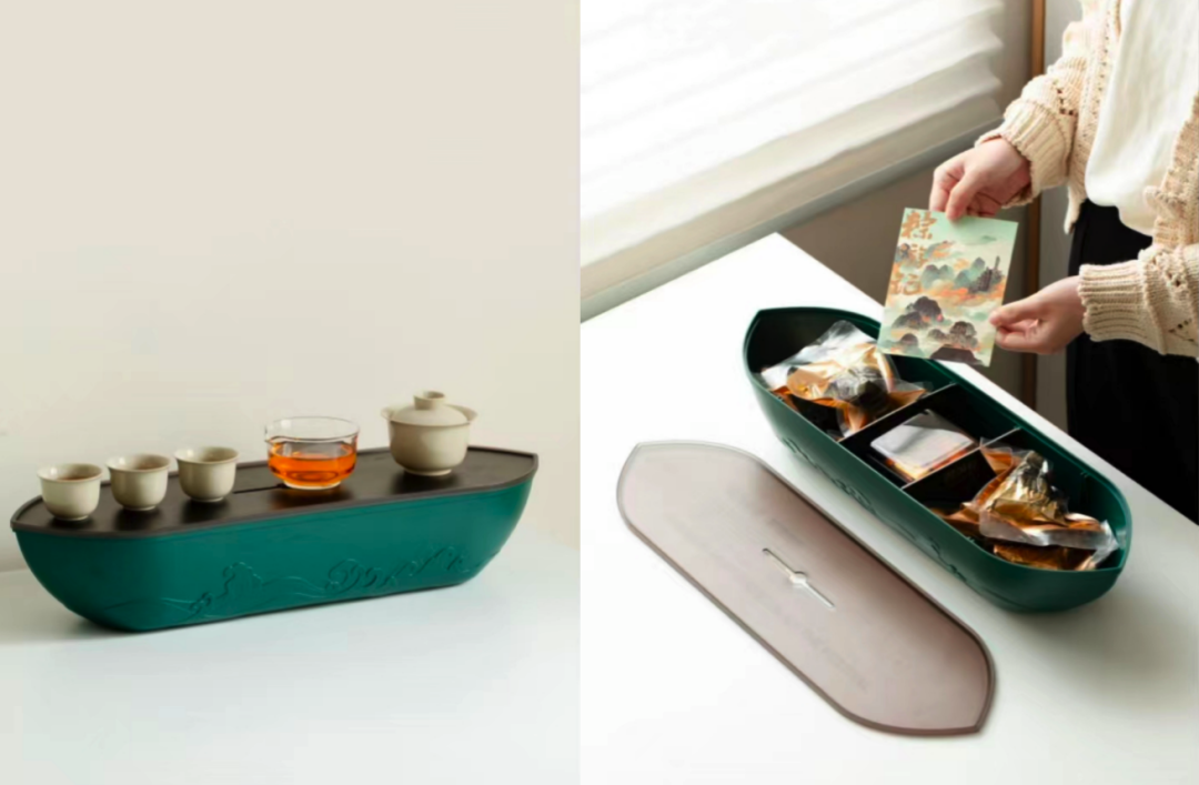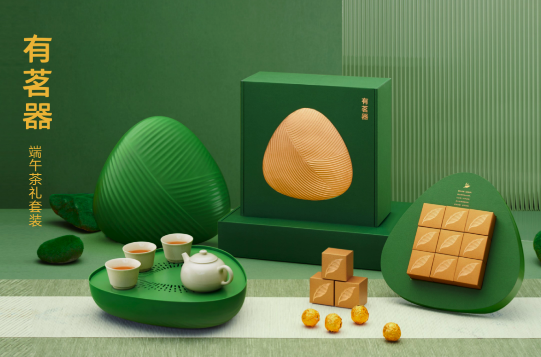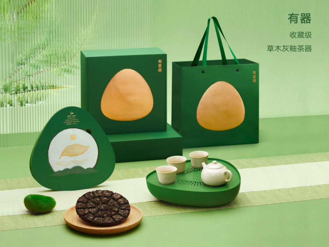 礼盒内含:粽形茶盘、精品茶叶、草木灰釉茶壶套装等