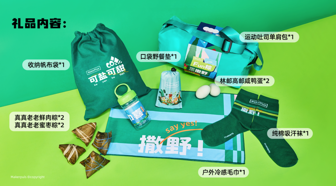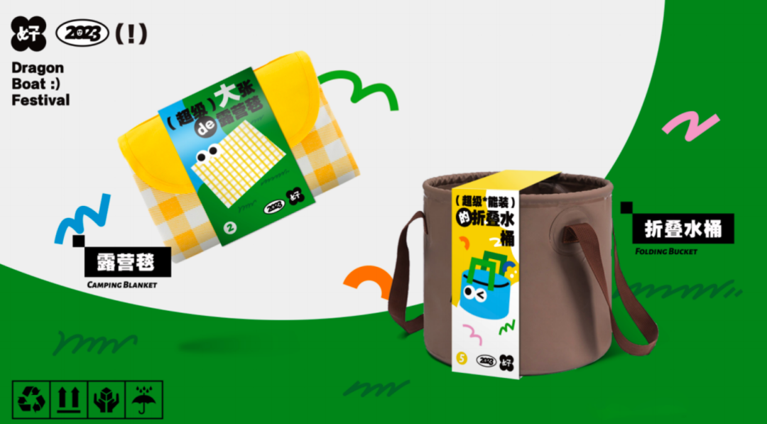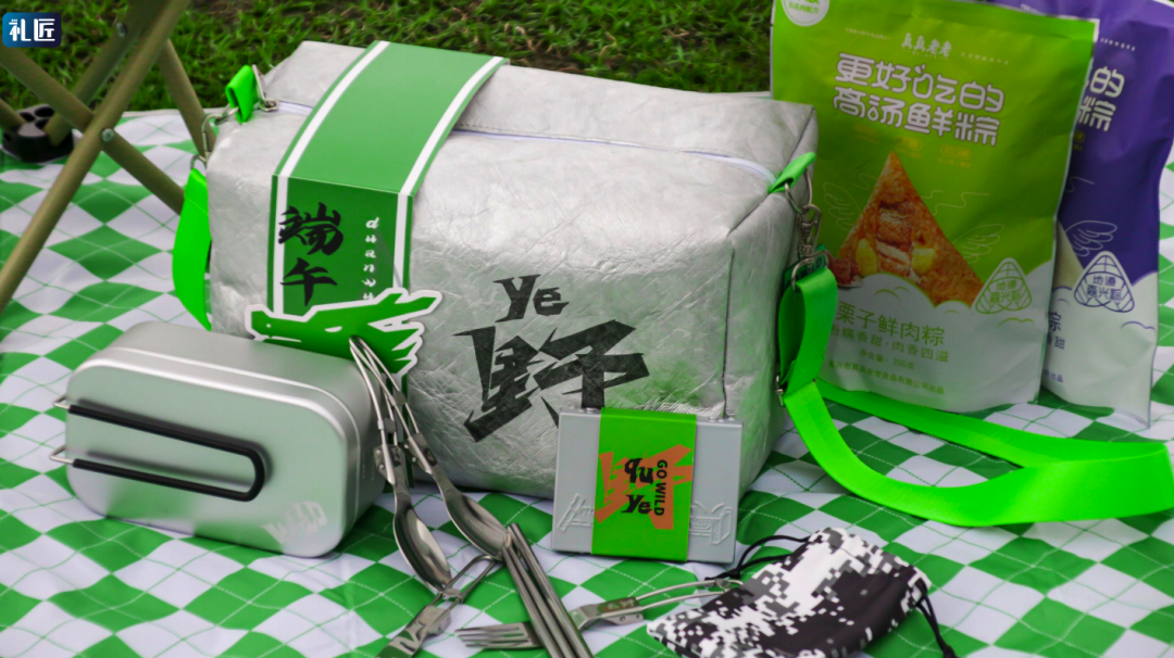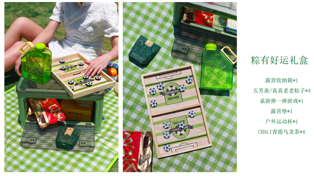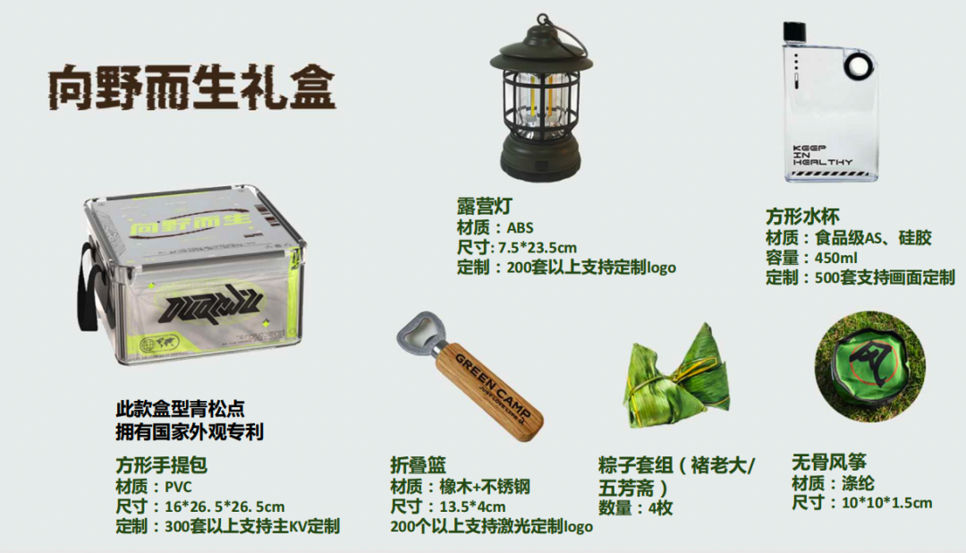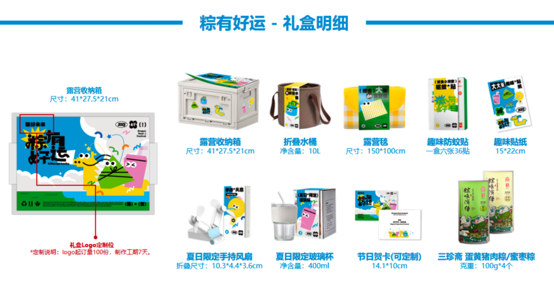 礼盒内含:折叠收纳箱、露营水杯、粽子等