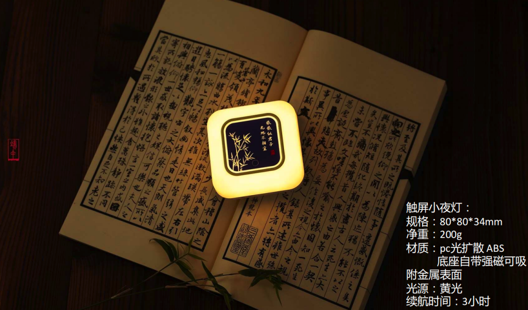 礼盒内含:编制礼包、书法玻璃杯、触屏小夜灯等