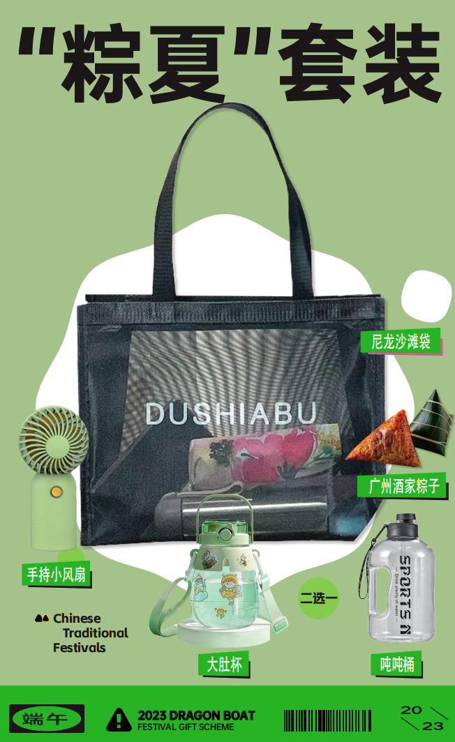 礼盒内含:尼龙沙滩袋、大肚杯/吨吨桶、手持小风扇等