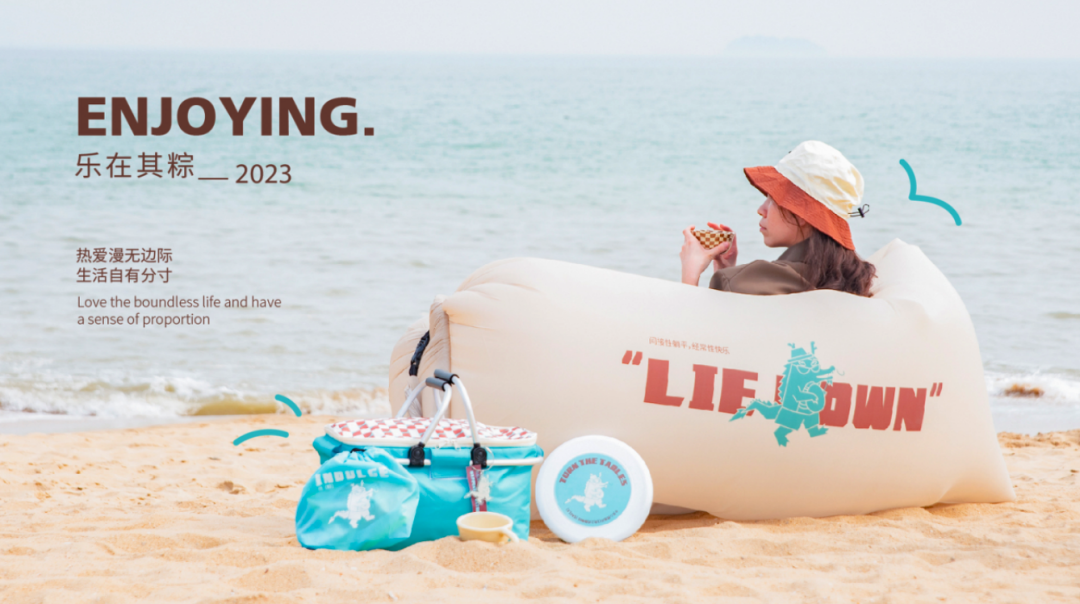 礼盒内含:布艺野餐篮、充气沙发、飞盘、渔夫帽等
