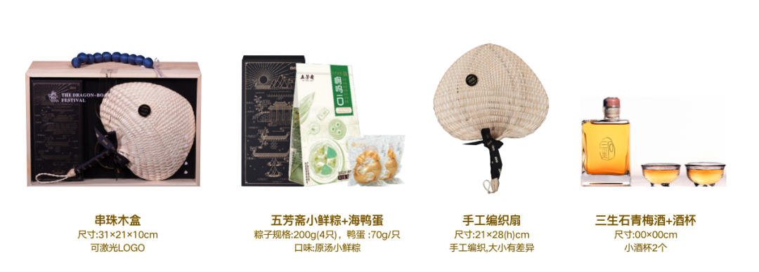 礼盒内含:龙舟茶盘、多口味粽子、咸鸭蛋等
