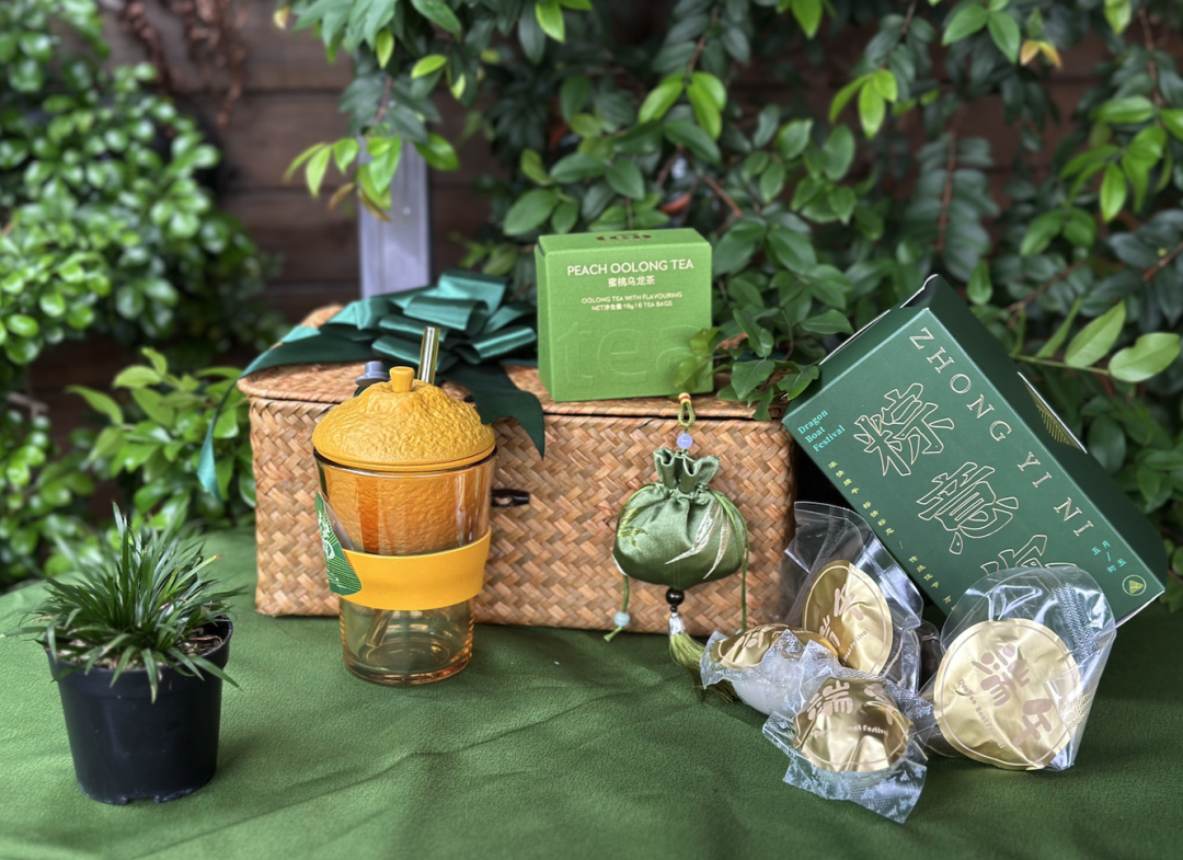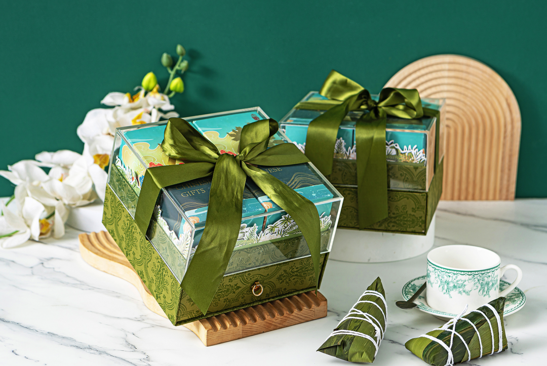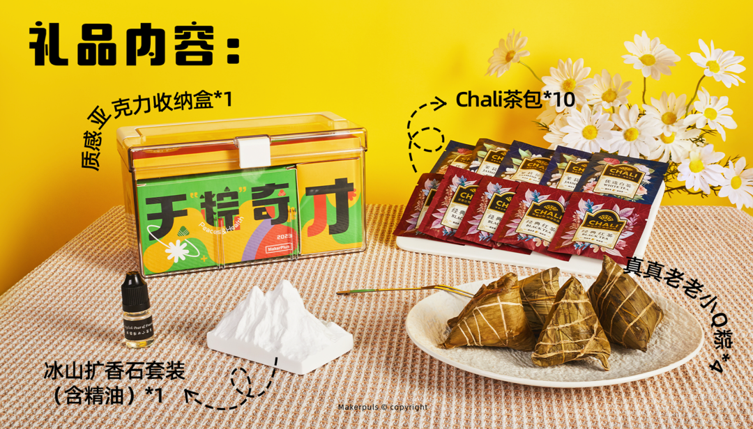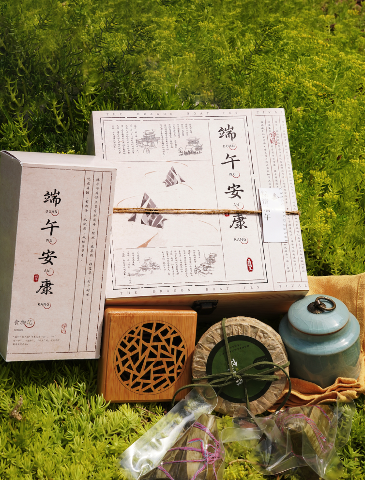 礼盒内含:扩香石套装、亚克力收纳盒、茶包、粽子等