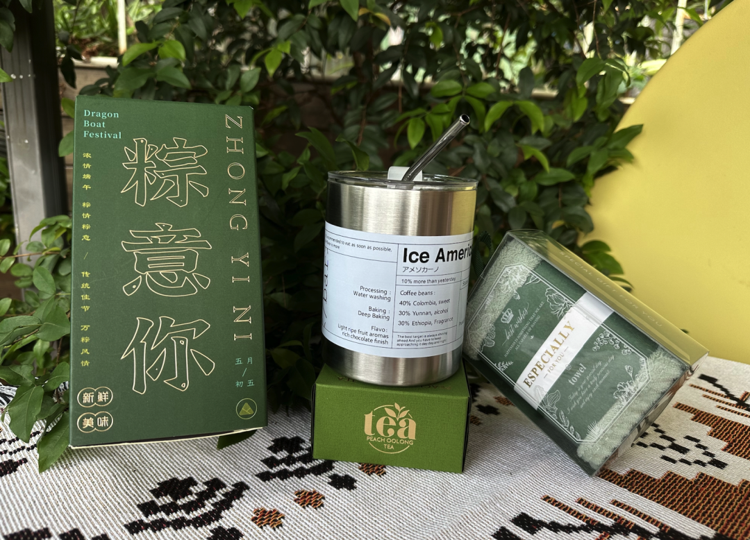 礼盒内含:不锈钢咖啡杯、毛巾、粽子等