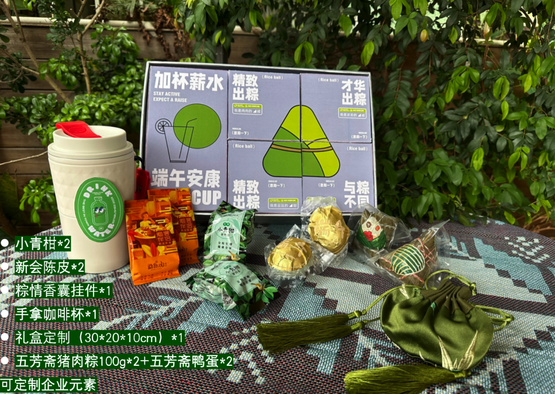 礼盒内含:小青柑、新会陈皮、咖啡杯、粽子等
