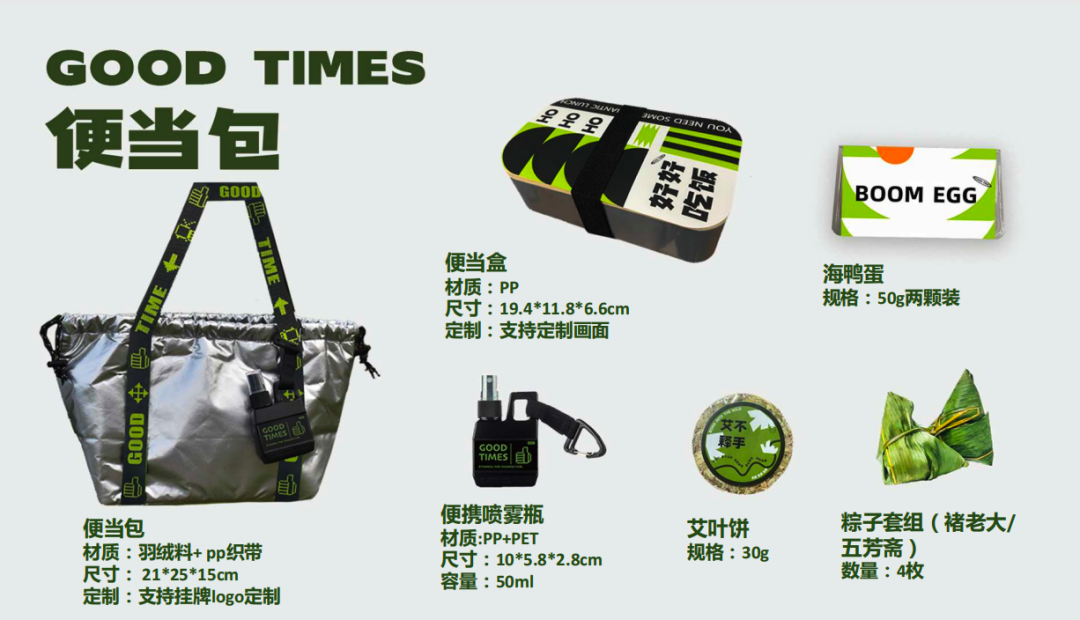 礼盒内含:便当包、便当盒、便携喷雾瓶、艾叶饼等