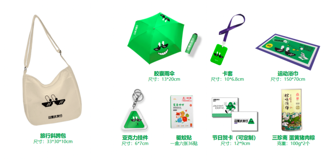 礼盒内含:旅行斜挎包、胶囊雨伞、驱蚊贴等