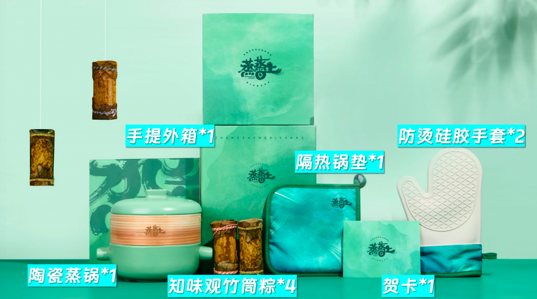 礼盒内含:定制蒸锅、笼屉、粽子等