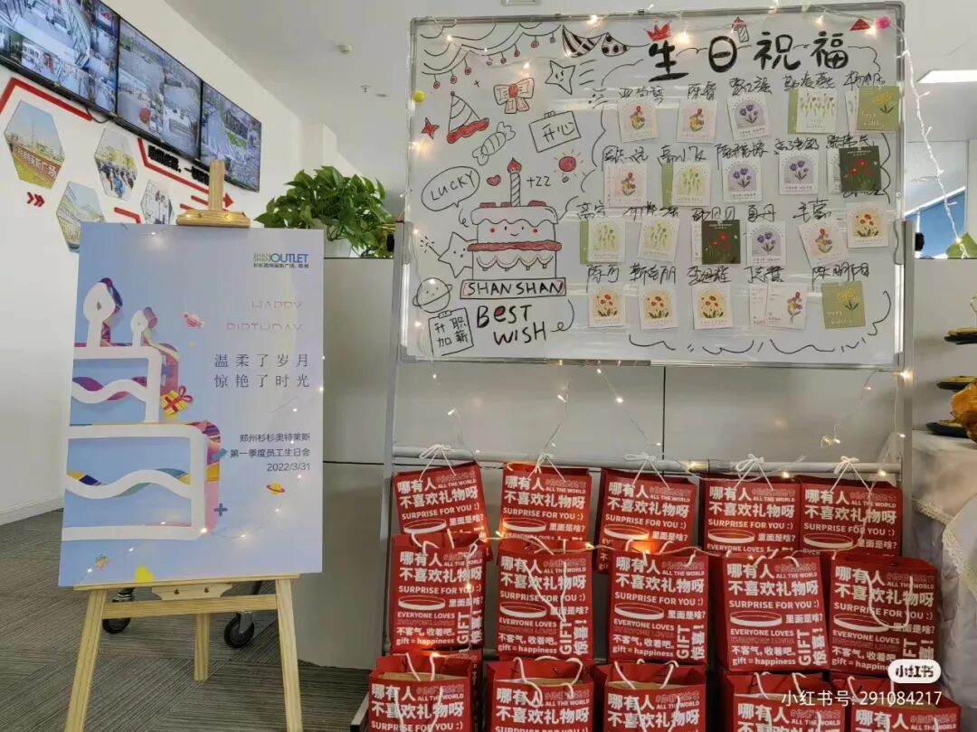 还可以将互动游戏替换成一份有趣的生日视频,既不占用大家太多工作时间,又能让现场氛围很欢乐。比如郑州杉杉奥特莱斯员工生日会曾用每个人的照片做成互动搞笑的视频,搭配手写生日祝福、精美礼品... 现场欢乐十足。