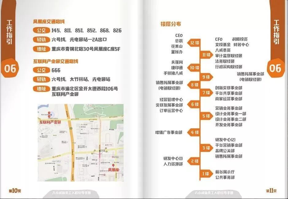 猪八戒为八小戒新员工做的入职手册里,包含了给八小戒的一封信、公司简介、企业文化价值观、入职手续办理程序、工作指引、人事制度、沟通渠道,以及其他杂事,将新人入职所需的内容整理的非常详尽。