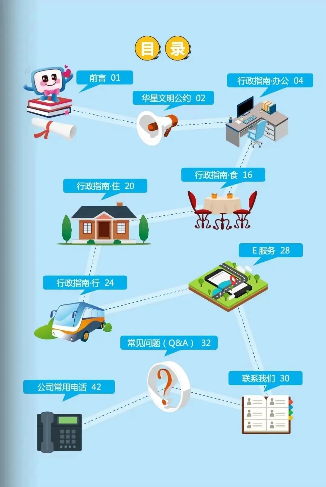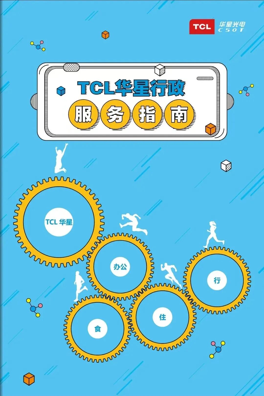 TCL华星光电在公众号菜单栏设有「行政服务」入口,其中的「行政指南」就采用H5形式为员工提供服务指引。进入目录有分为10个更详细的内容,并贴心的在每部分标清页码更方便员工查找。