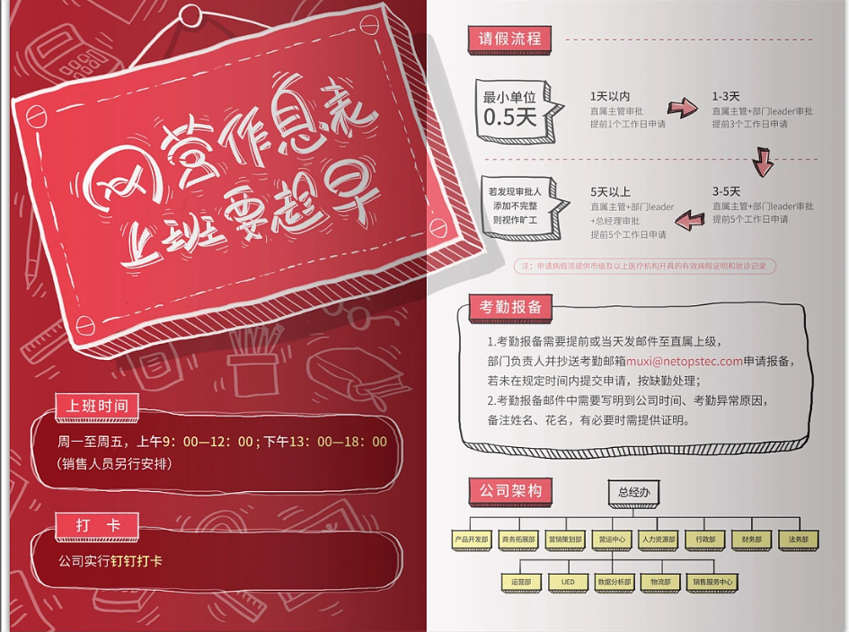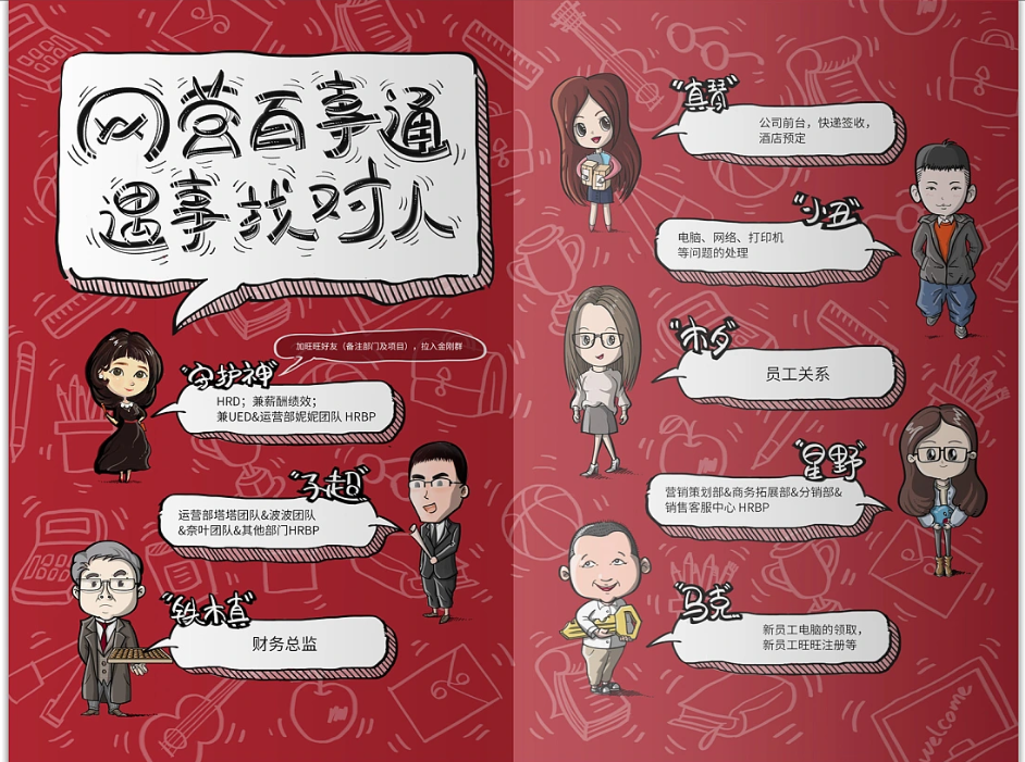 网营科技以手绘的方式来设计入职手册,让整个手册感觉非常的温馨和有趣。