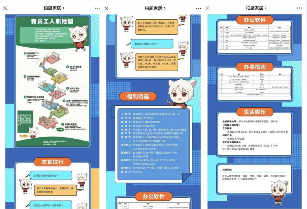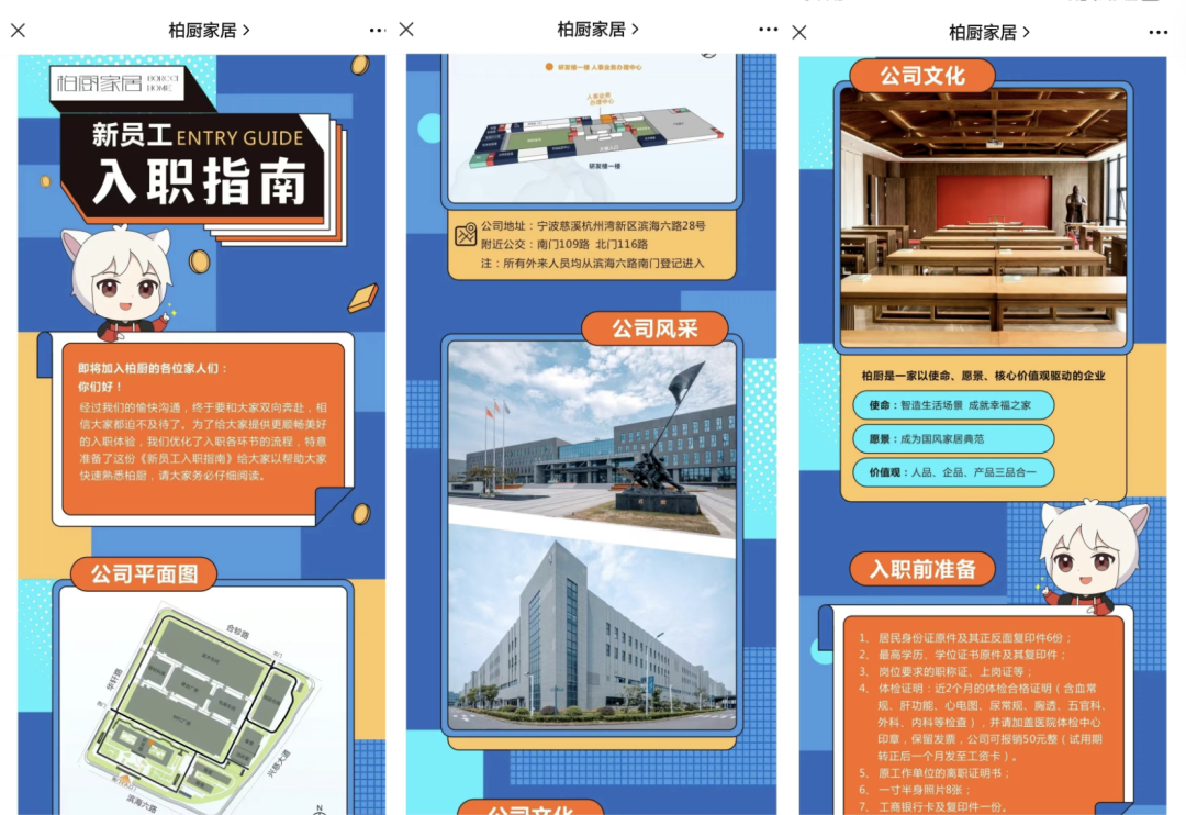 柏厨家居也在公众号上整理了一篇完整的新员工入职指南,帮助员工快速熟悉柏厨。