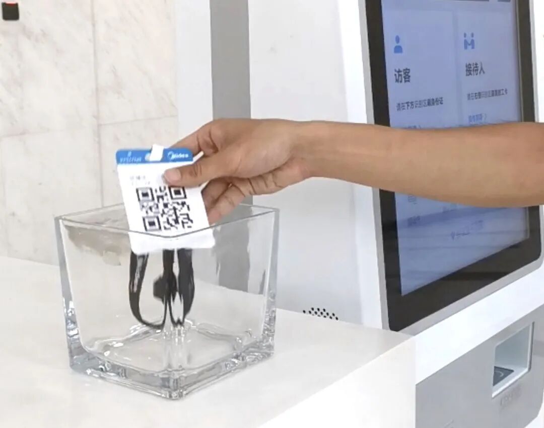 而且现如今的访客机功能越来越人性化。在美的,由访客刷身份证或接待人刷工卡在访客自助机上可打印访客凭条,贴在访客卡上即可通行门禁。