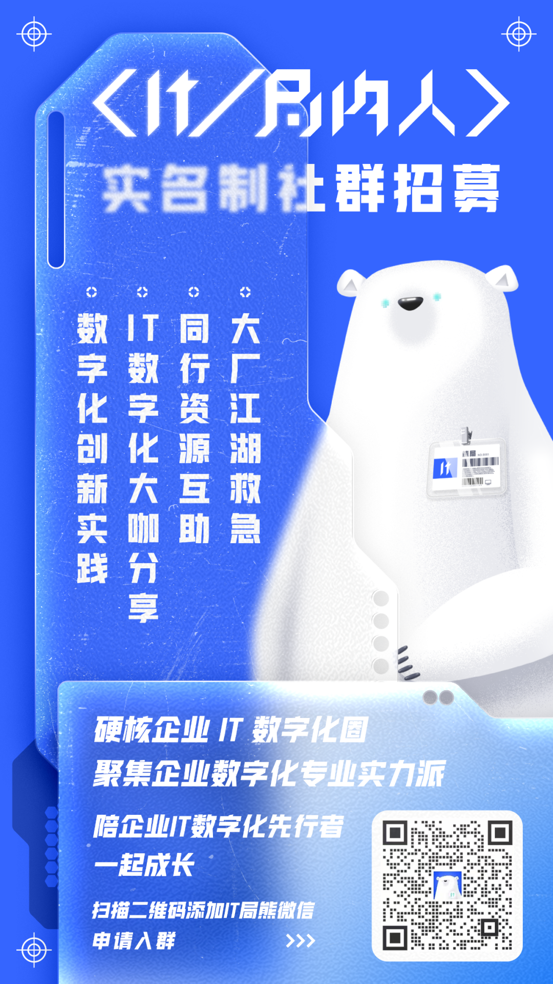PS. 如果你也是企业IT数字化人,或是想要进入IT数字化行业的小伙伴,欢迎你加入我们IT局内人的线上社群,在这里,你可以收获IT 数字化大咖的经验知识分享,和同行人交流共享资源,甚至是碰撞出美妙的合作火花~赶紧扫码进群吧!