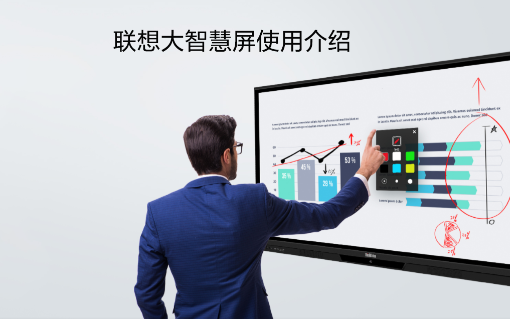 再比如联想的智慧会议大屏,围绕企业办公、协作、会议以及个人办公、差旅、生活等场景,为企业及用户提供智慧商务解决方案。