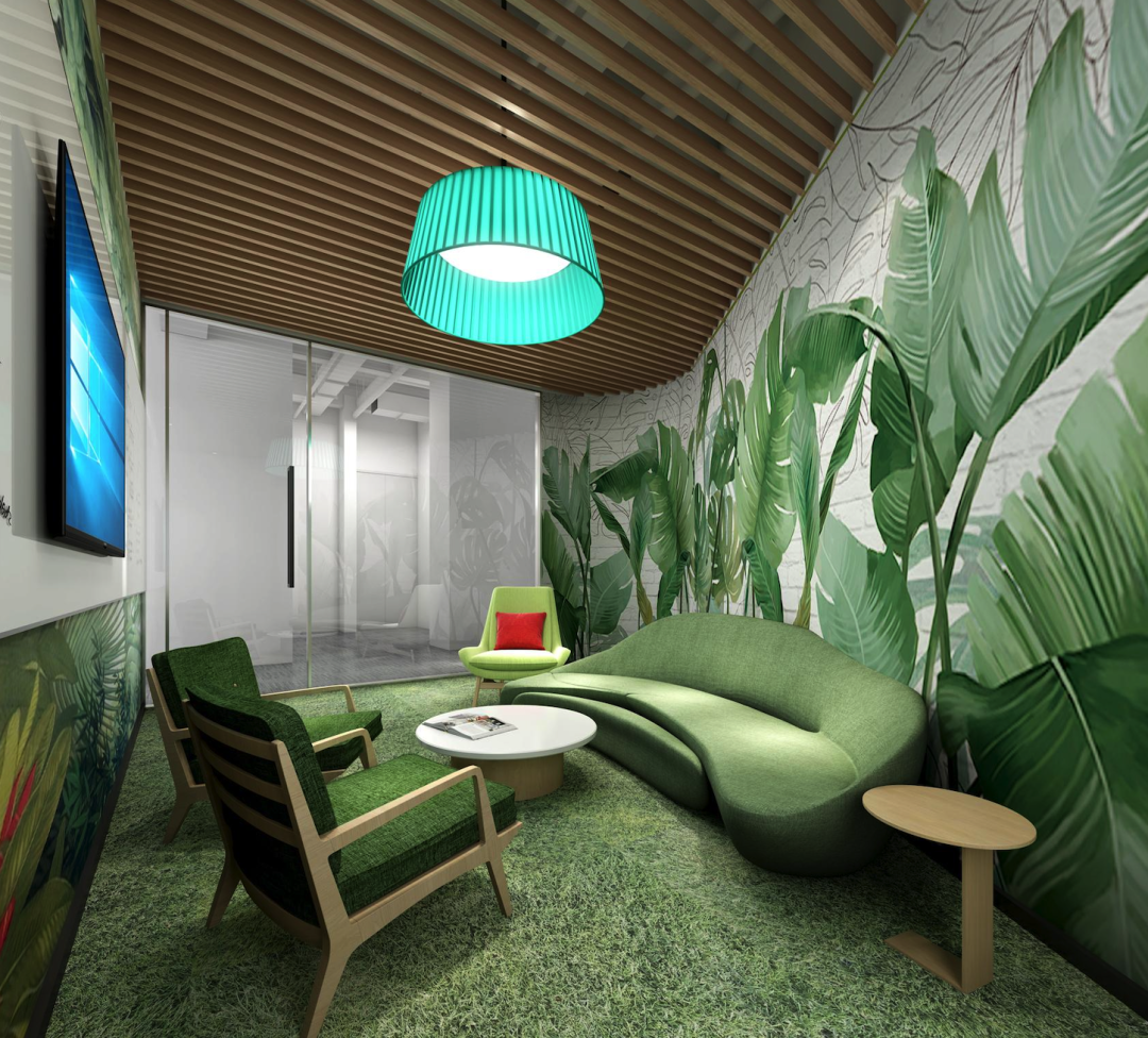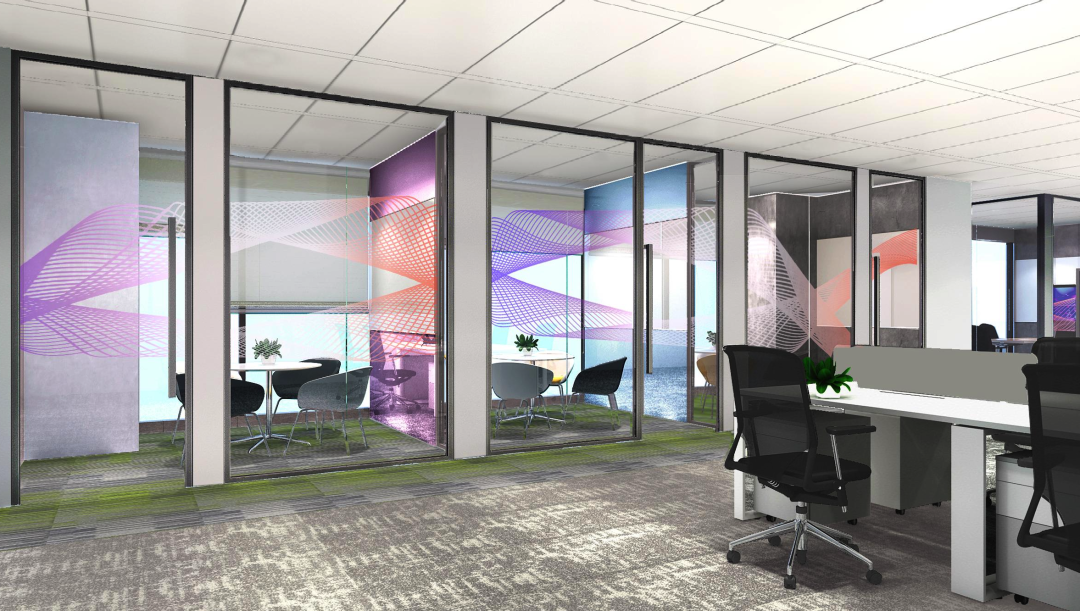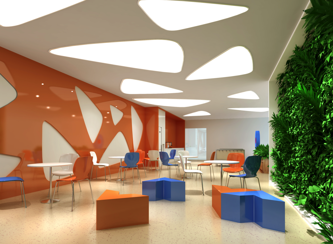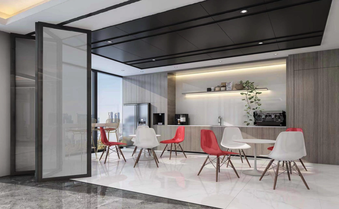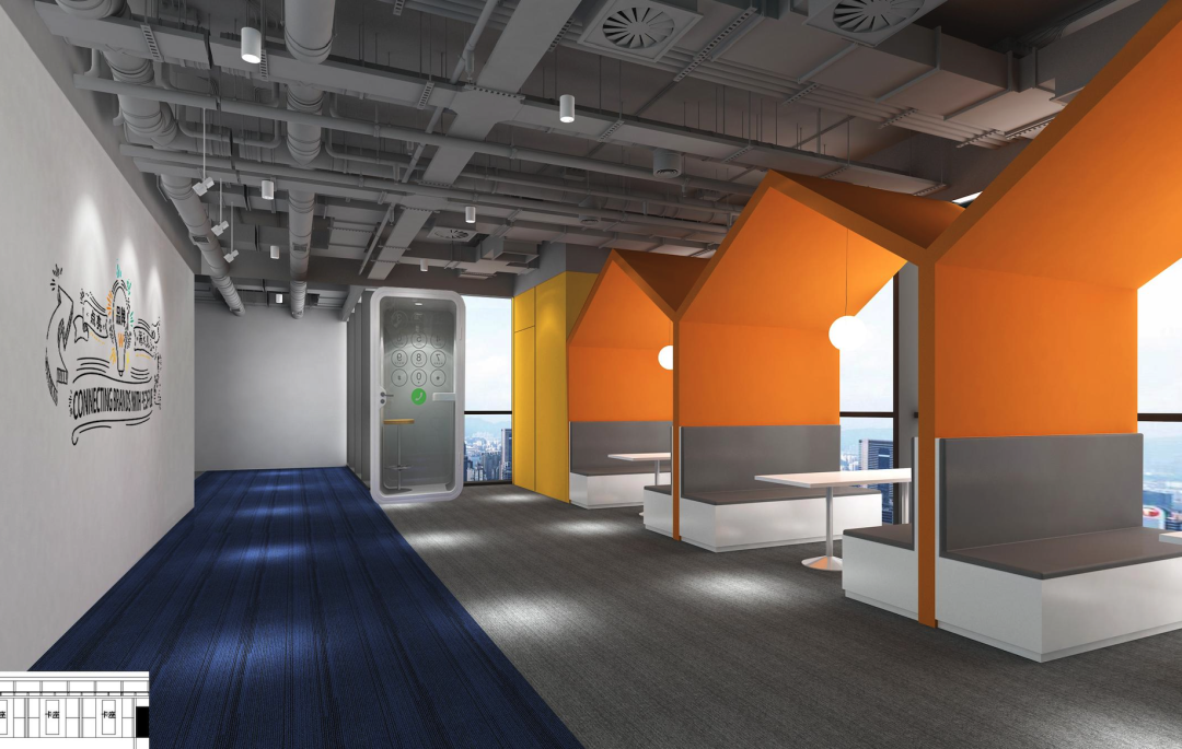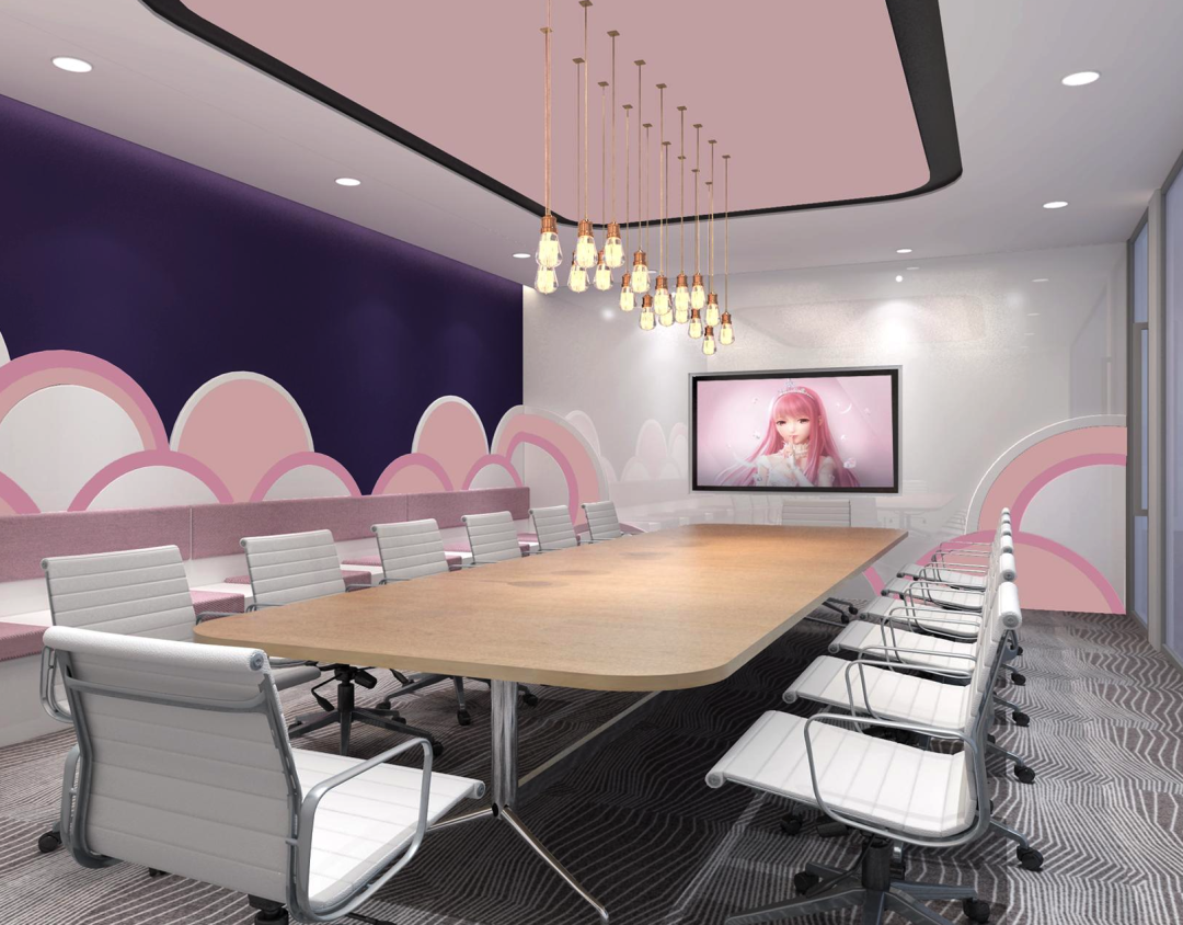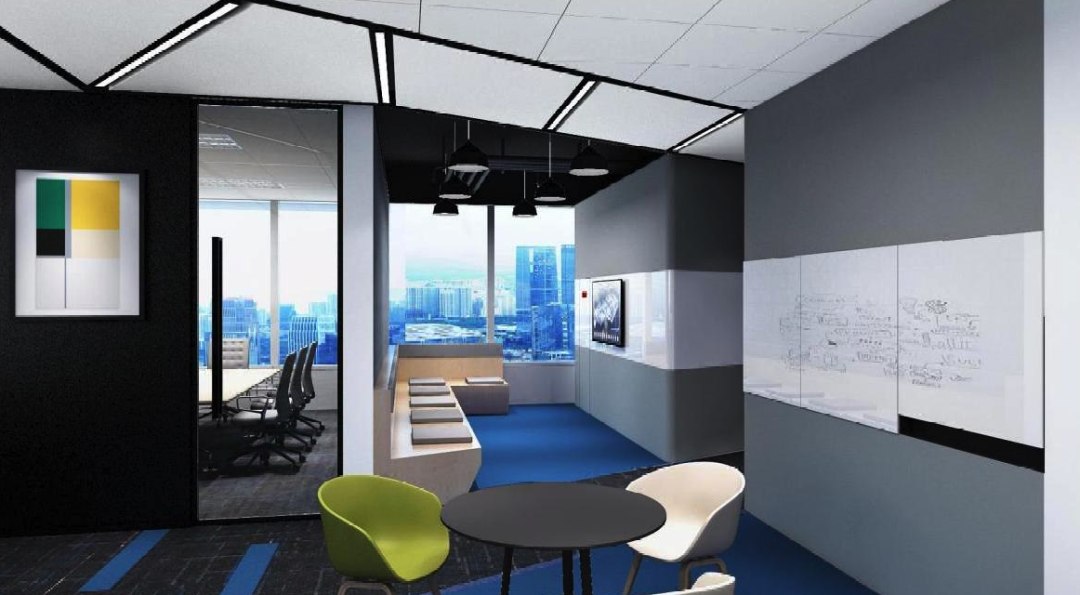 洽谈室采用炫彩几何图案装饰,即契合办公空间氛围,也能营造出多巴胺式让人眼前一亮的感觉,点亮员工办公心情。