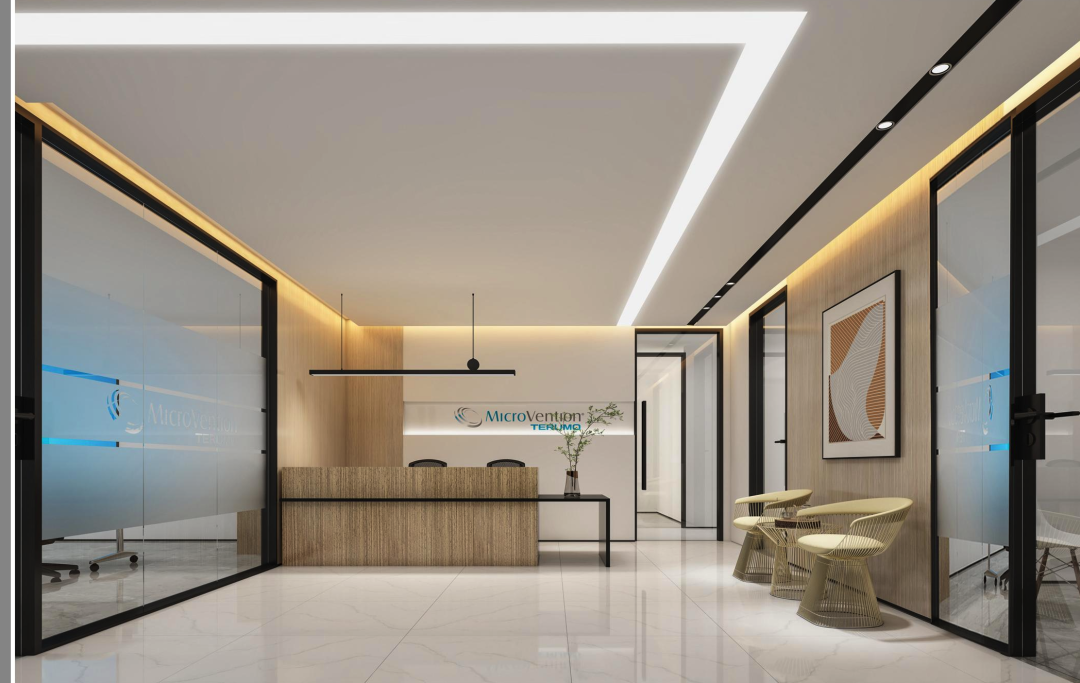 微仙是一家来自美国的医疗科技公司,希望能够在空间设计中传达该公司的专业可信和品质。所以他们在设计风格上将现代科技及稳重扎实的风格相结合,注重选材及施工细节,使来访者能够在空间细节中体会微仙所传递的品质和可靠的内涵。