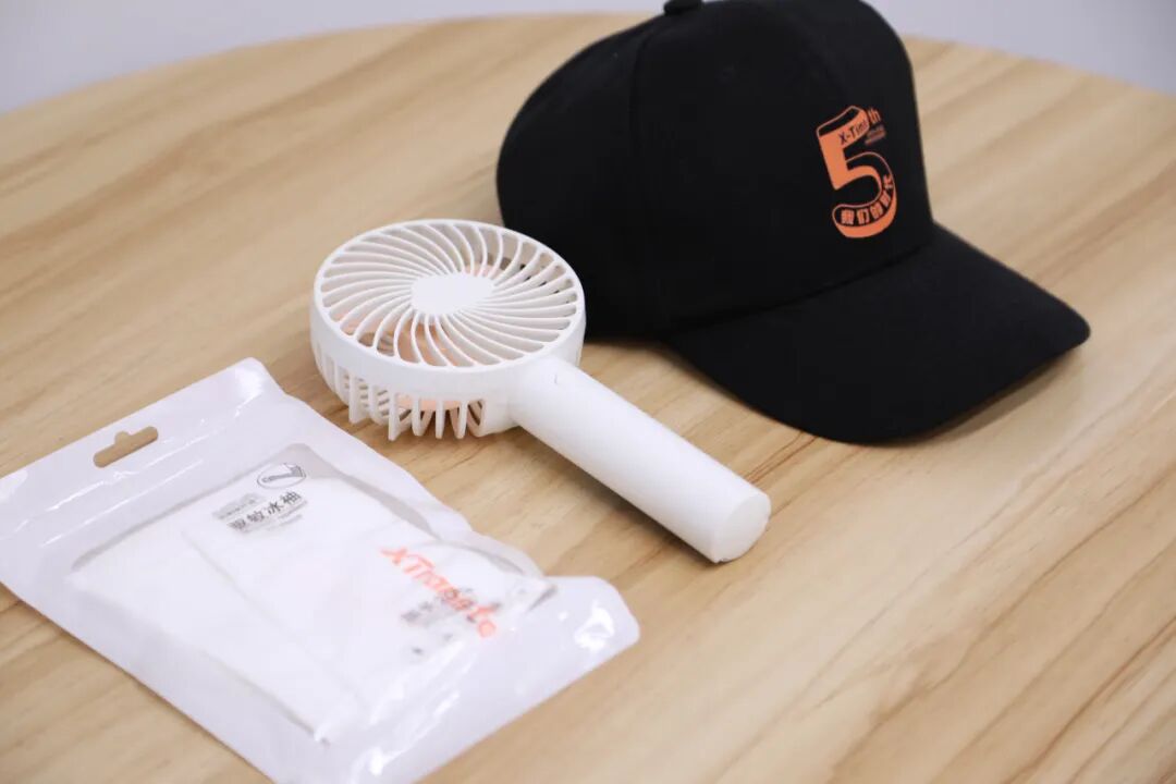 抵挡外出热日的还可以为员工准备各种防晒好物,譬如XTransfer五周年为员工准备的清凉夏日礼,就包括防晒伞、帽子、小风扇和冰袖。
