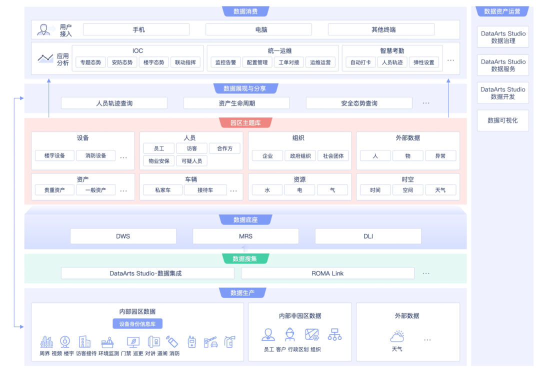 b.园区运营:以园区安防、设施管理、能效管理等场景为对象的日常运营活动。通过智慧园区相关场景的运营,营造绿色、安全、智慧的园区环境,支撑园区相关主营业务的顺利开展。