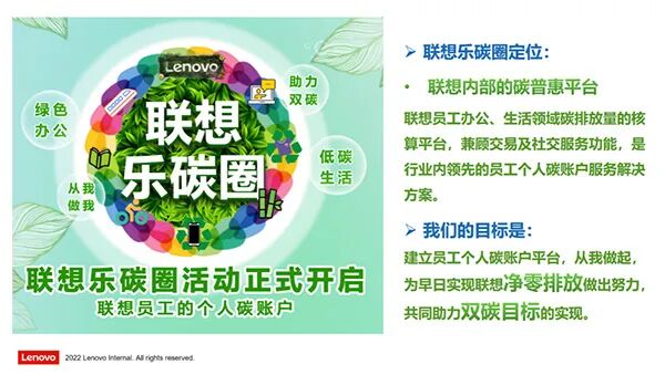 *“联想乐碳圈”致力于为每一个员工建立个人碳账户平台