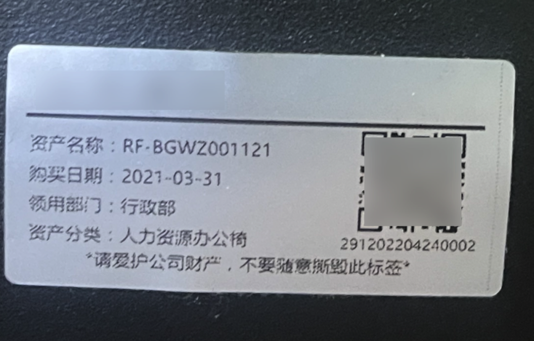 在标签样式上,一定要有的是资产的数字编码以及条形码/二维码。然后还可以用文字说明它的关键信息,如所属部门、购买日期、所属类别等,这样不了解公司编码规则的人也可以轻松get。