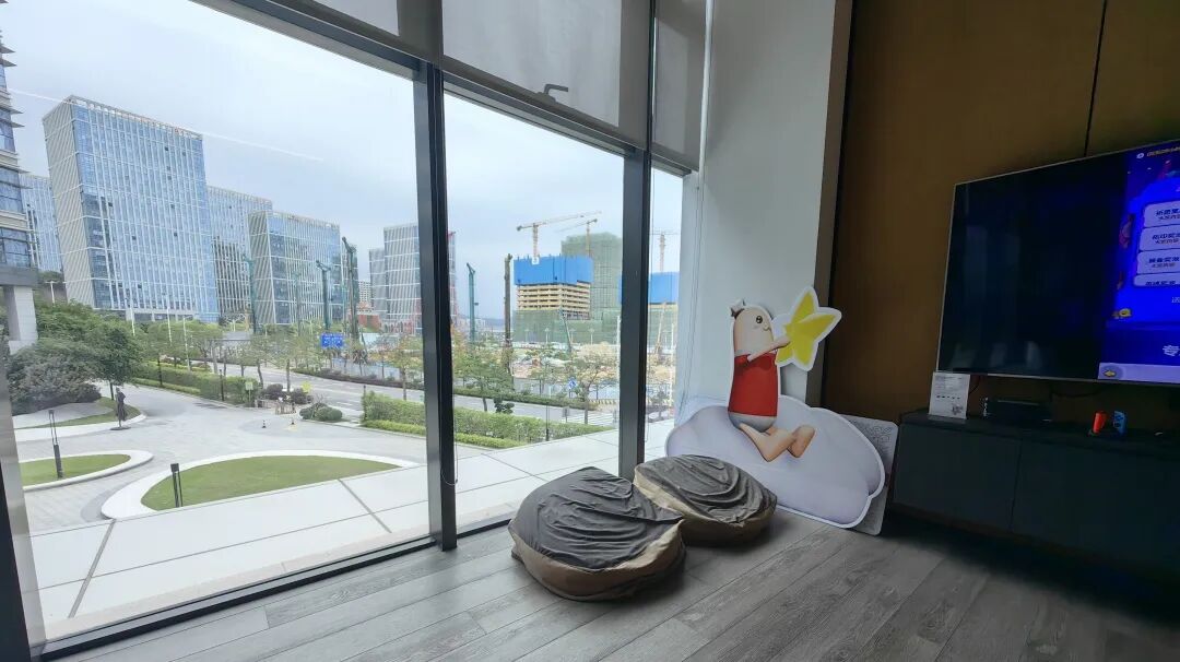 值得一提的是,在真有趣茶水间还有超大屏幕、Switch和看起来就超舒服的沙发,工作累了来这里放松一下,或打一把游戏、或坐在窗边看看风景,都是不错的选择。