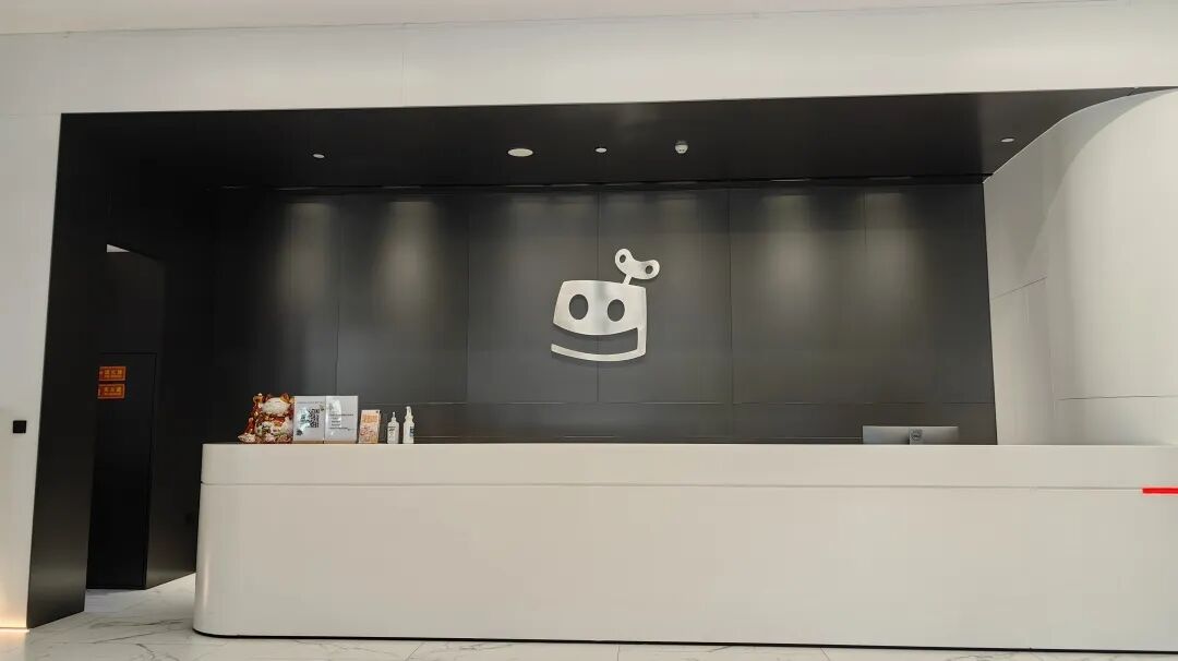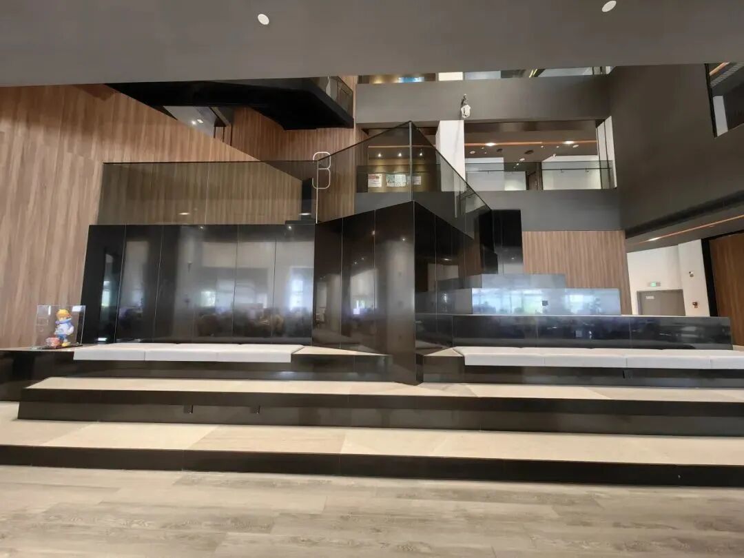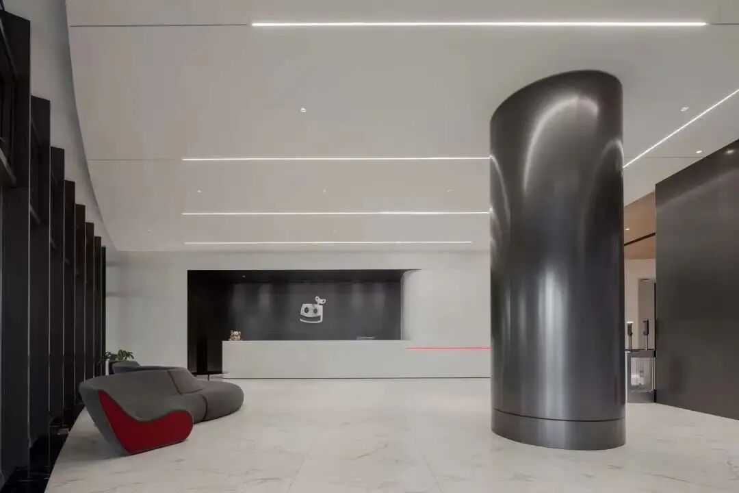 走进真有趣大楼,在挑高比较高的接待区,小知一下子就看到了使用黑白灰配色的极简真有趣前台,简单大气,搭配金属感真有趣logo让整体设计更高级有趣。