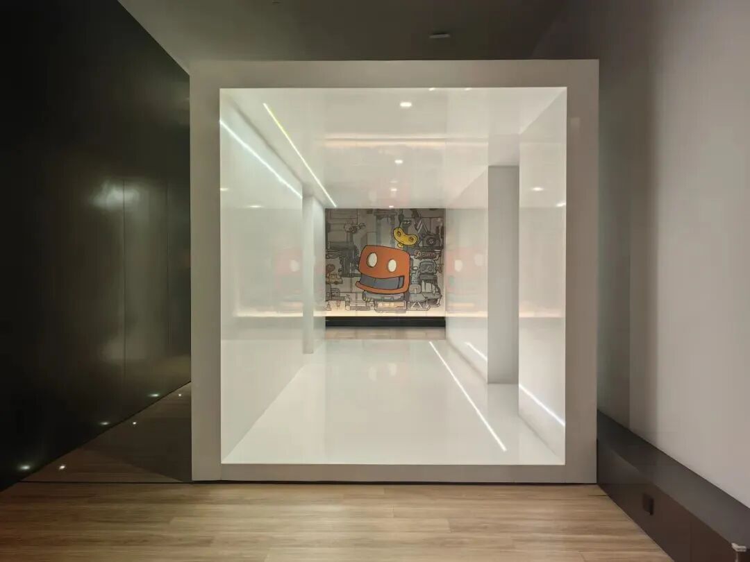 在进入真有趣大楼时要先通过连接大厅与电梯间的“艺术通道”,高级感max!