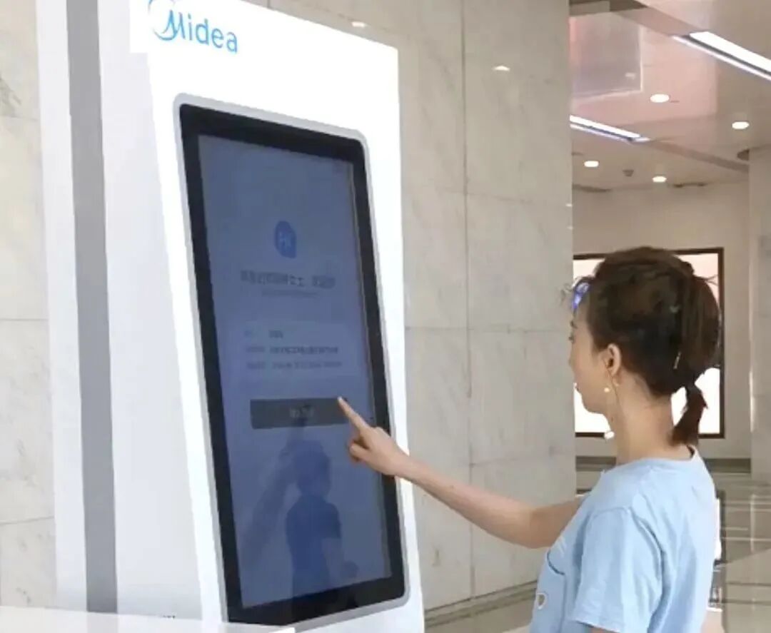 在美的,接待人一键发起预约,流程提交审核通过后,接待人可以通过刷工卡在访客自助机上打印出访客凭条,将访客凭条贴在访客卡上,来帮助访客便利通行。