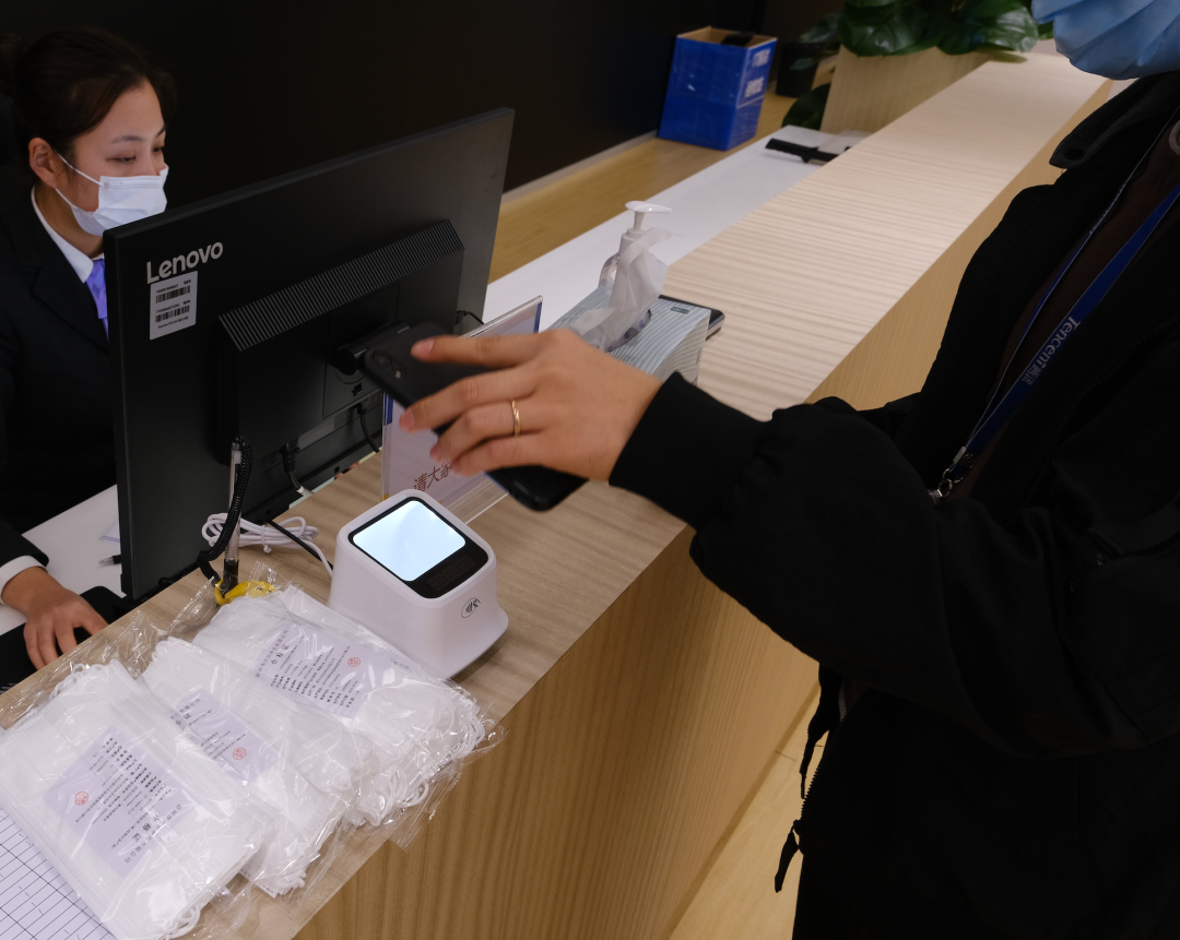 例如腾讯的电子工卡,只要访客在线上录入拜访信息,就能够得到身份凭证——访客预约码,这样一来,访客到访后,只需要刷码就能够完成核验。