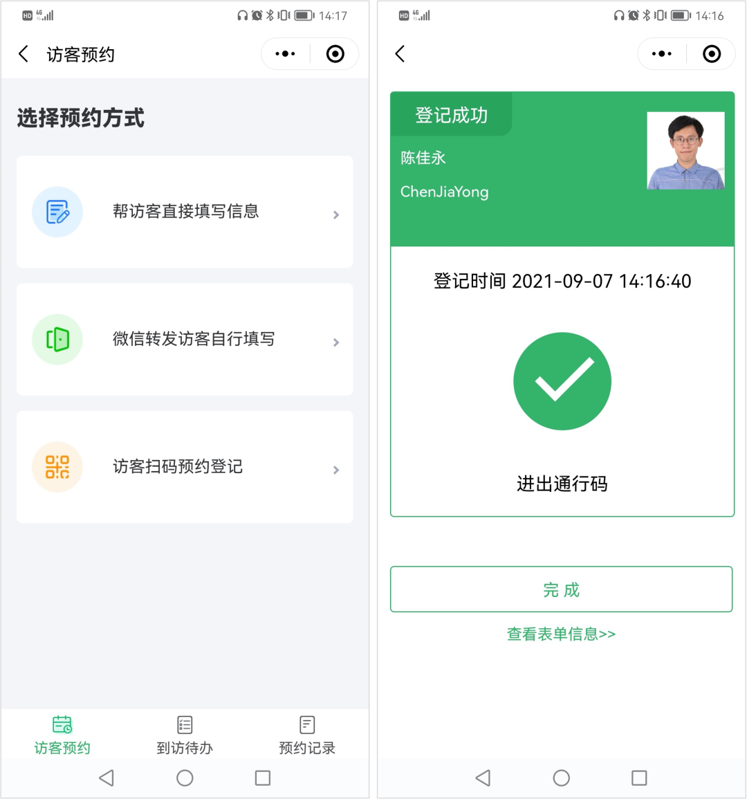 除了核验本公司的员工,以便通行以外,有些工卡还具备了访客预约和登记的功能。