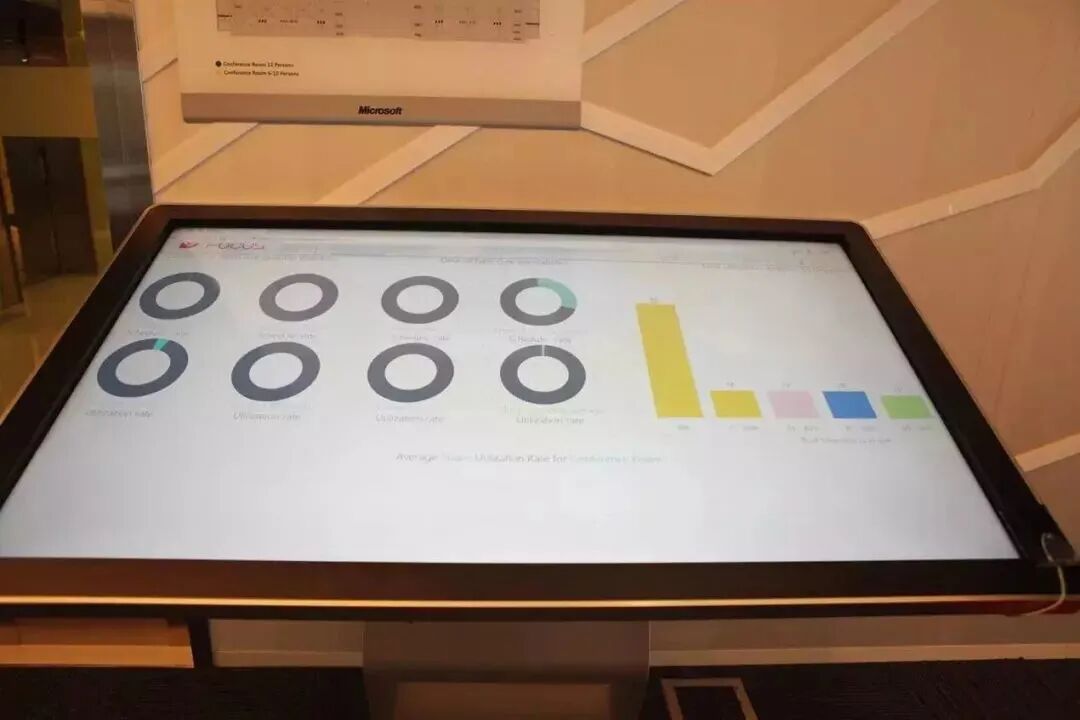 微软公司对销售和市场员工所在的楼层实施移动办公模式,设置了开放共享工位,每天使用工位需要到达公司后预定使用。智能互动屏可以让工位信息即时显示给使用者,随时查看。同时有助于行政部门更好地进行数据采集以及后续的大数据分析,了解不同员工对于办公空间的使用需求及使用习惯。