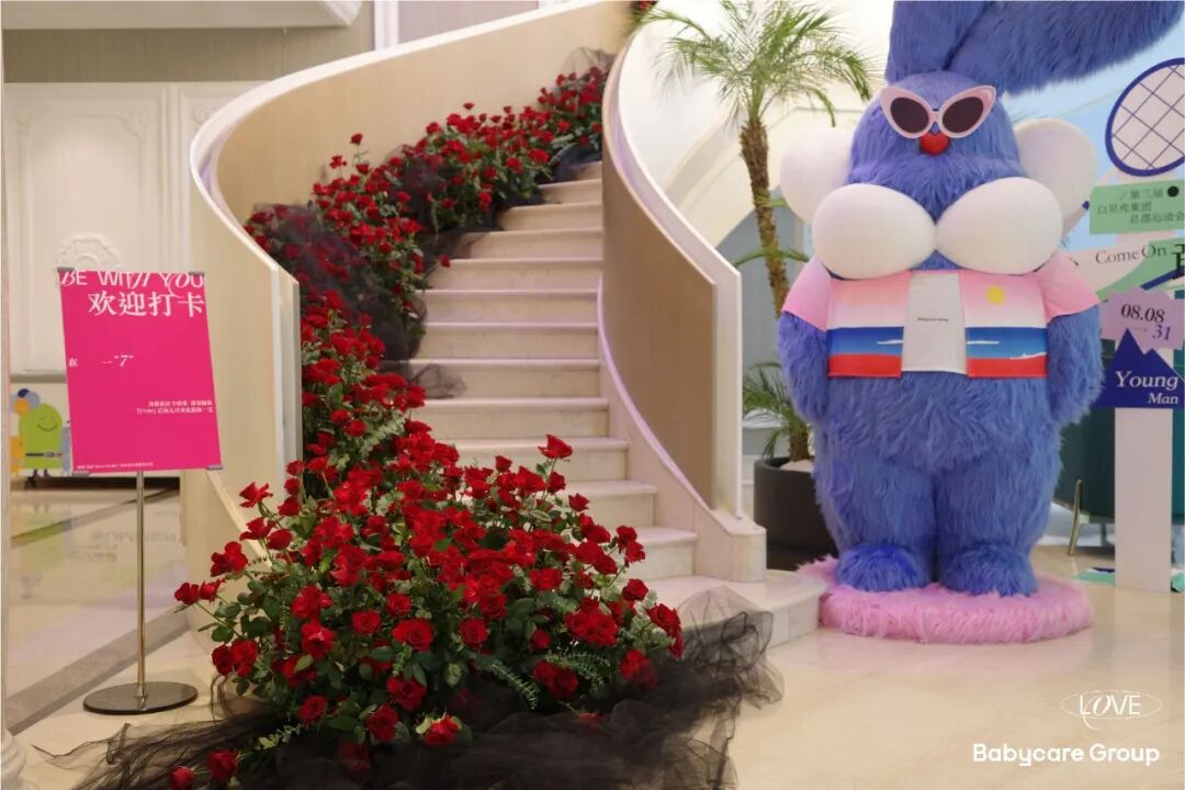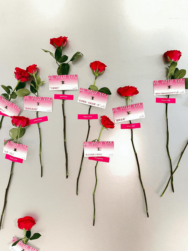 今天的Babycare真的超级浪漫,不仅办公室各处装饰有应急玫瑰,还用玫瑰搭建起一处楼梯玫瑰瀑布,既可成为浪漫的打卡点,也不担心会浪费,下班后大家可以把玫瑰取走。