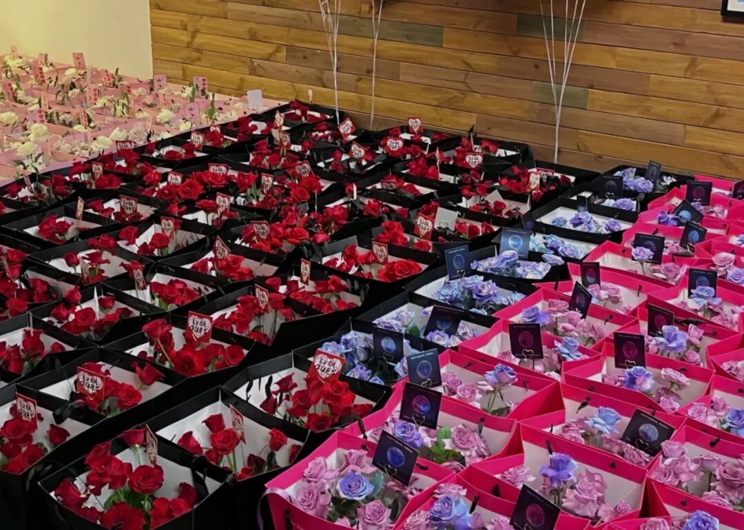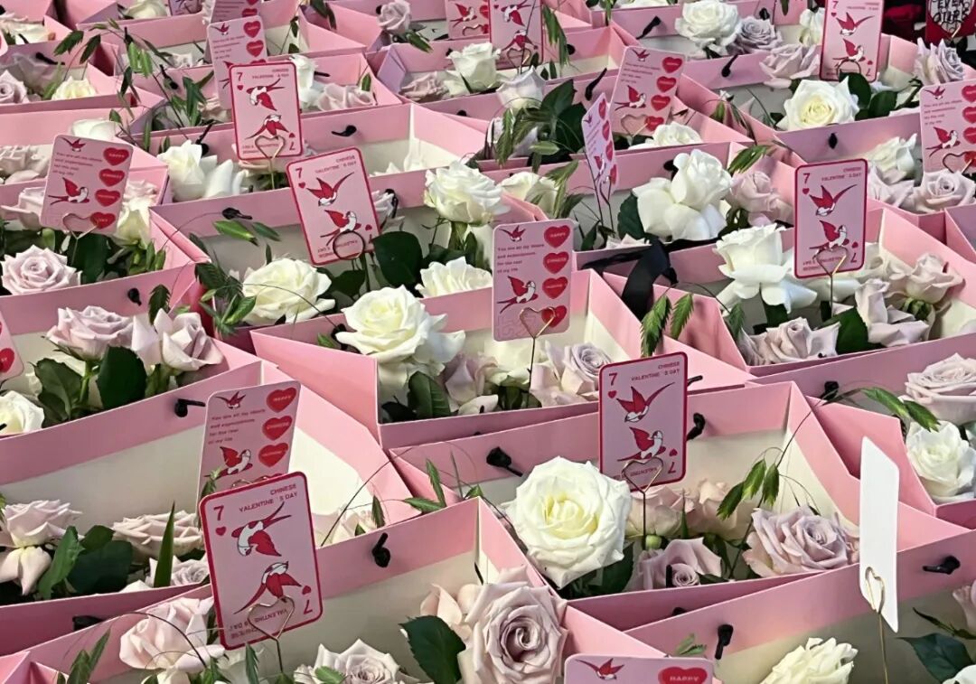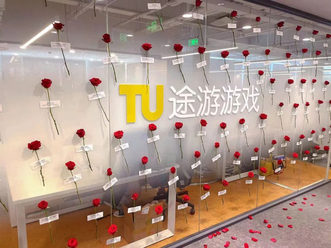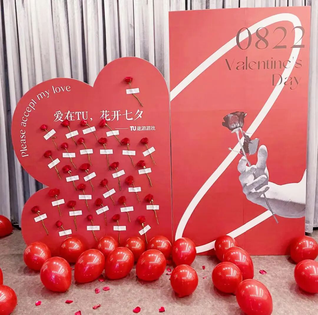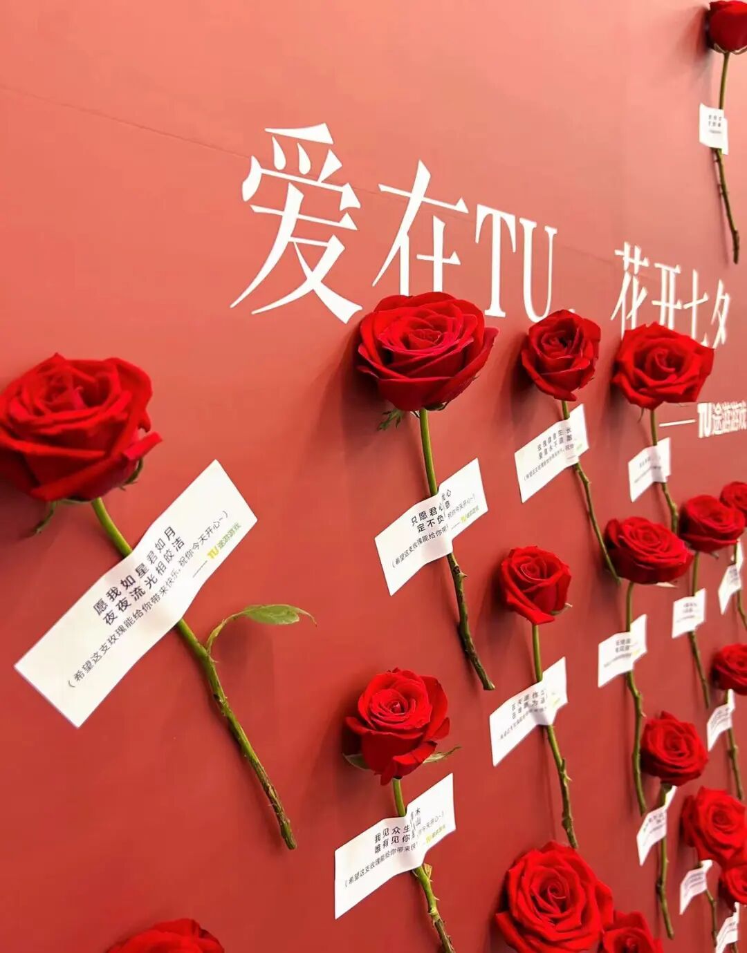 七夕节当天,途游游戏的每一位TUer都可以在公司各处的玫瑰花墙上为心爱的TA摘走一朵玫瑰,并得到一句爱的祝福。