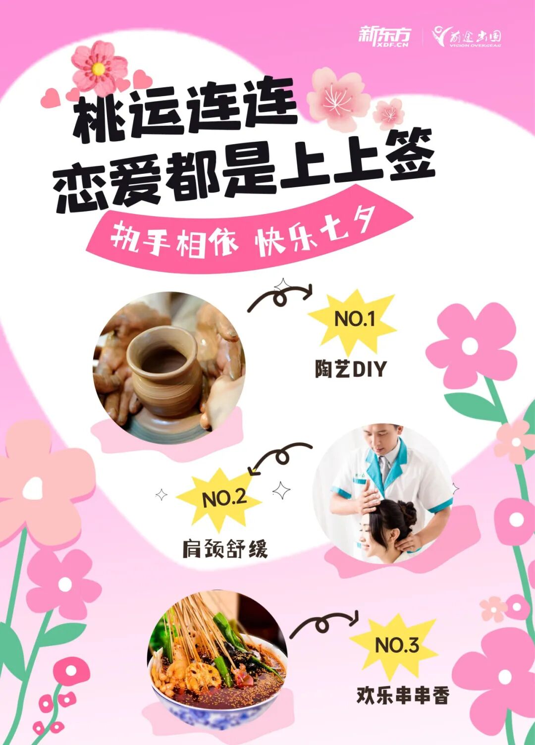 北京新东方前途出国用陶艺DIY、肩颈按摩、欢乐串串香等活动让这个七夕多姿多彩。