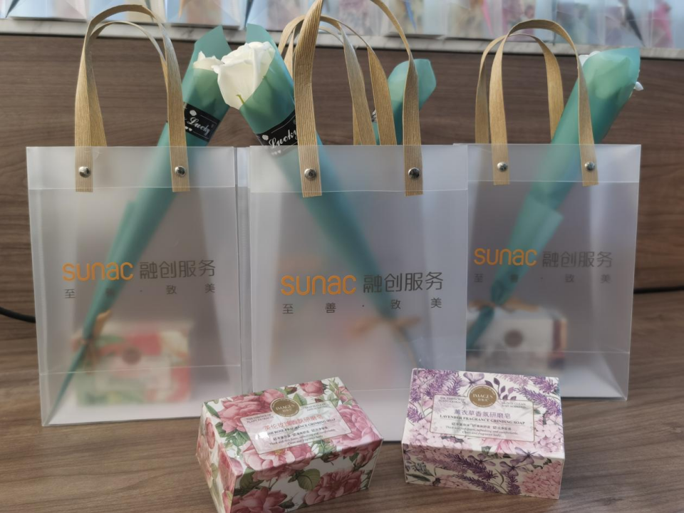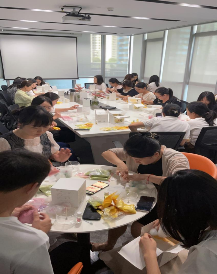 并且考虑到DIY活动不太适合男性同胞,公司也为每个人准备了礼品(手工花+精油香皂)。