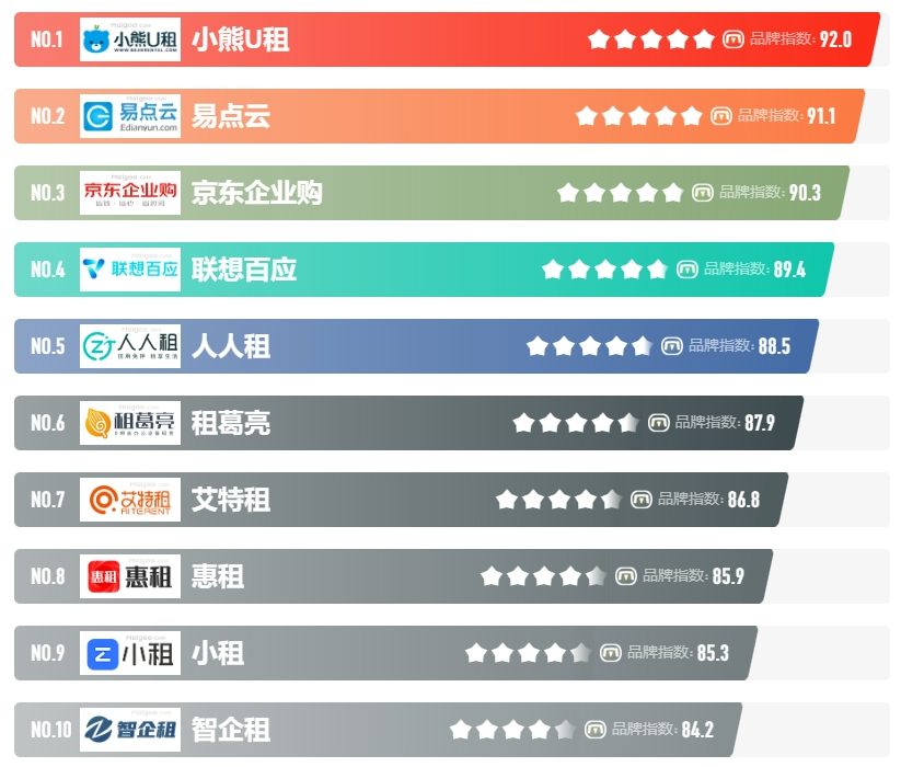 目前市面上租赁的平台有很多,像是联想百应、小熊U租、易点租、京东企业购、人人租等等。