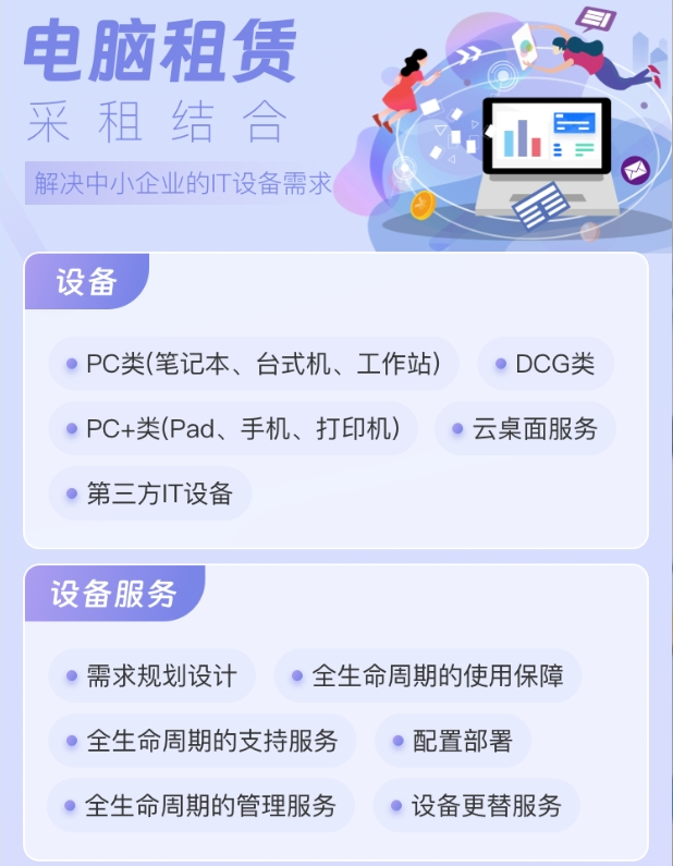 可见无论从资金和后期维护,还是短期需求等方面考虑,租赁电脑对企业来说都是一种不错的选择。