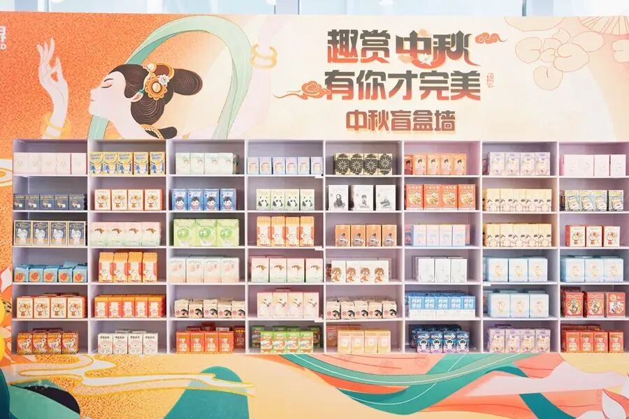 完美2022年中秋用500余份盲盒组成超大型盲盒墙,邀请员工感受解谜与拆盒的双重惊喜!其中每个绚丽的中秋花灯对应一个趣味谜题,解对灯谜即可兑换盲盒。
